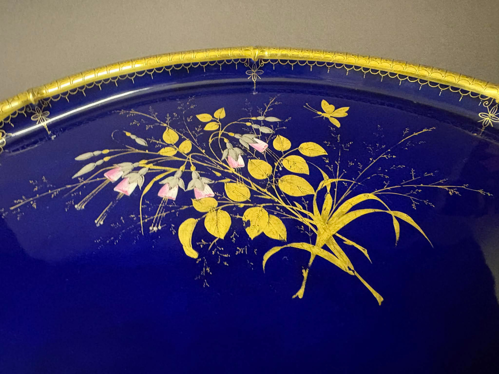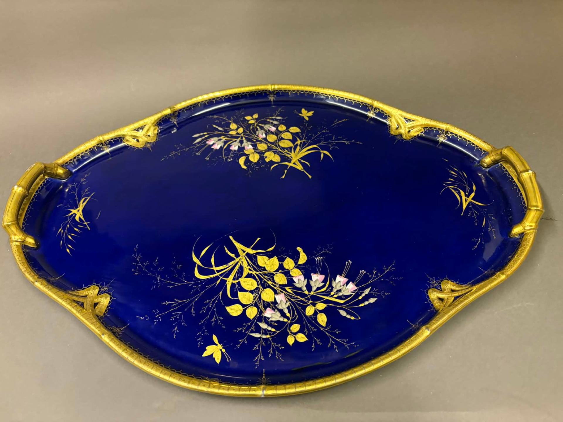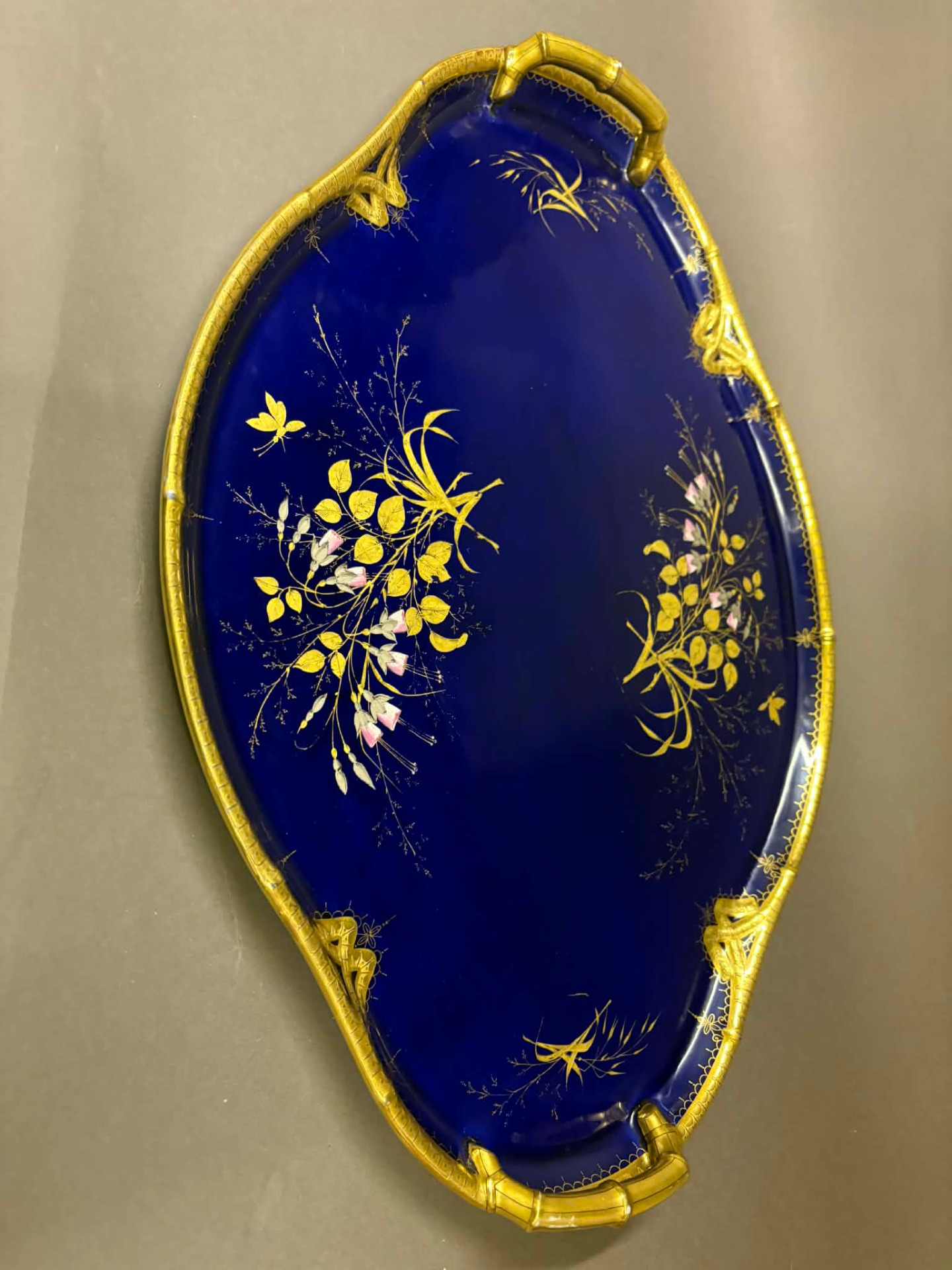 luxusporcelán, egy egykori kínálótálca. Ez a szépség jelzett, de az