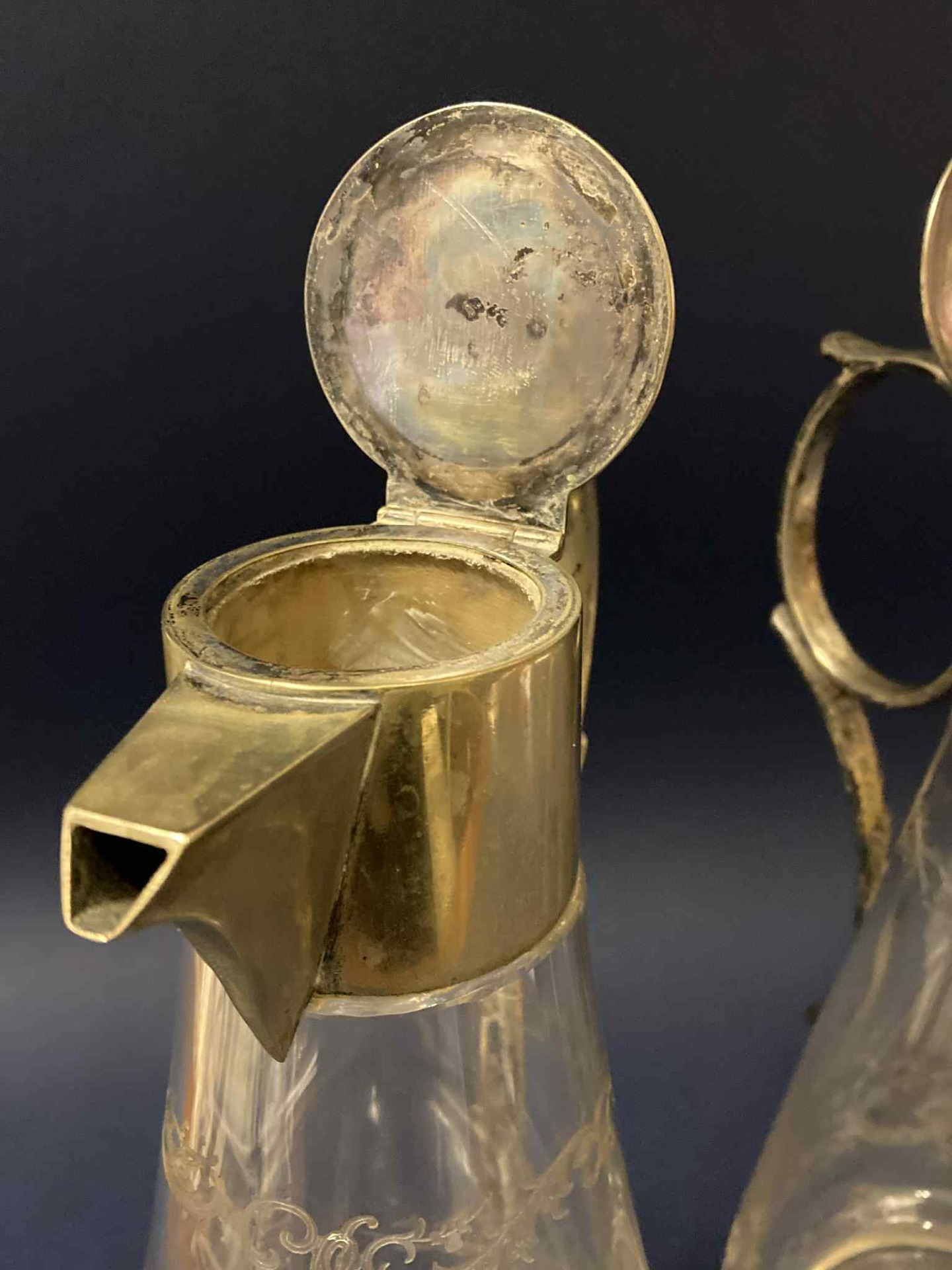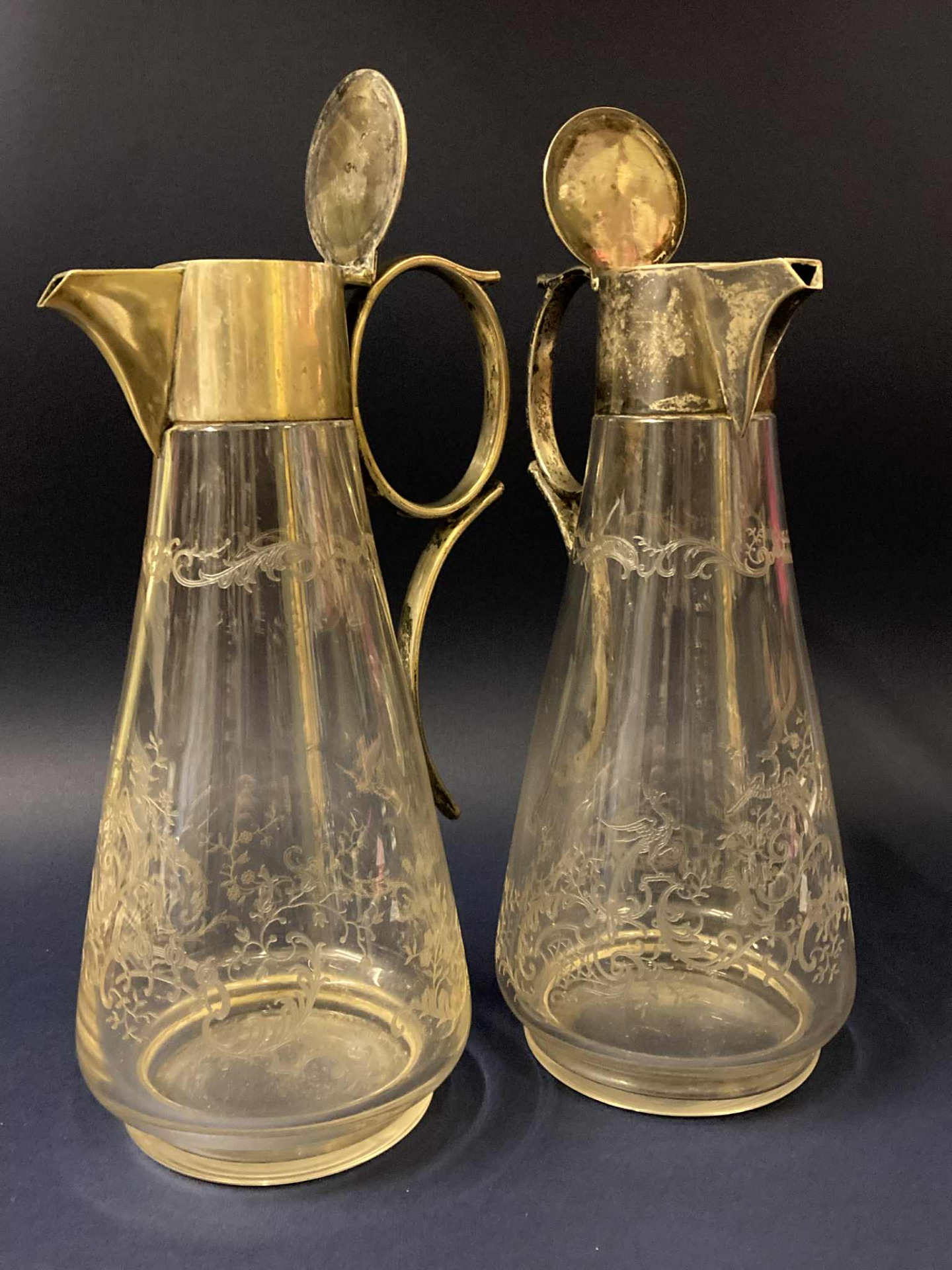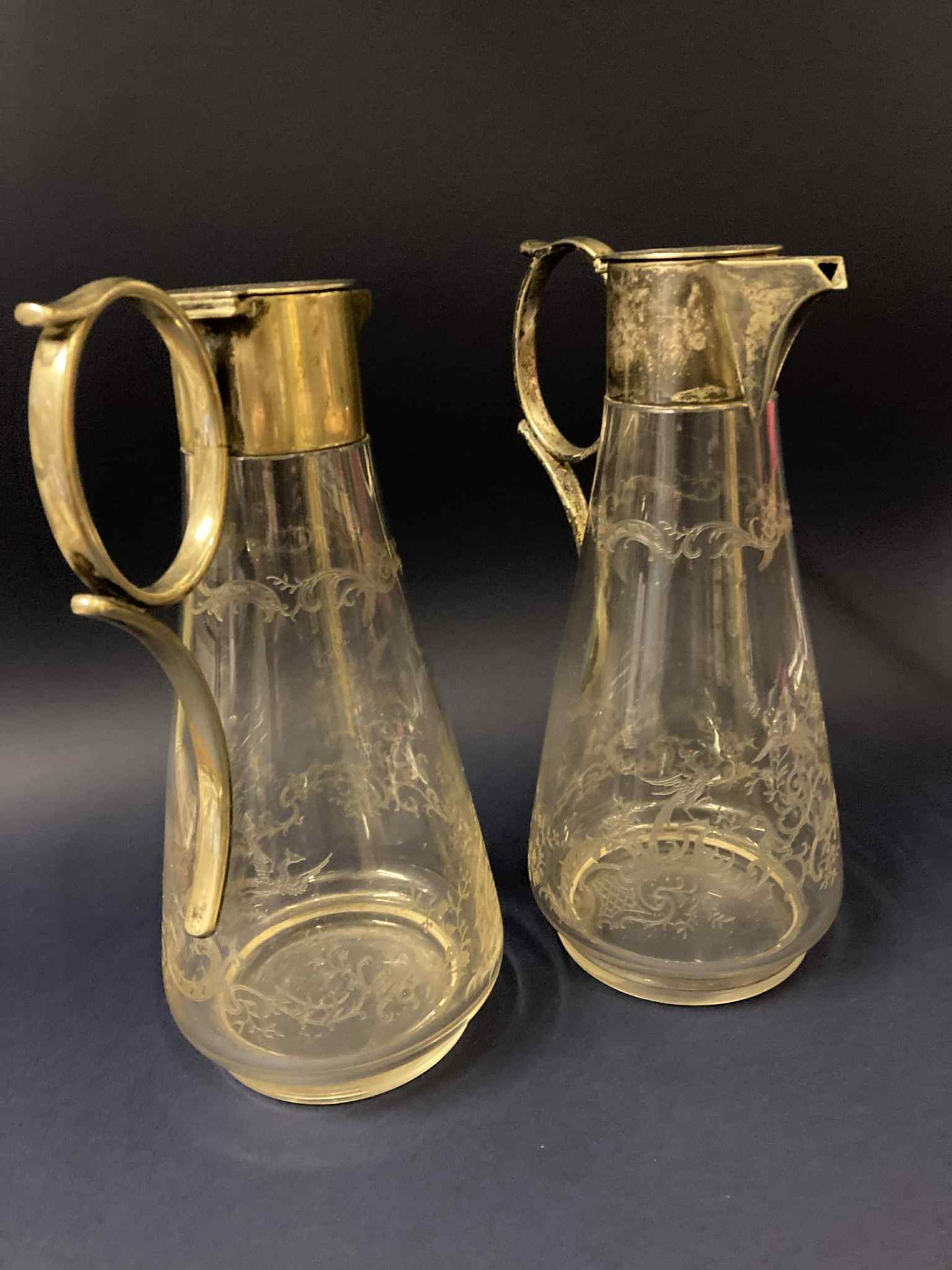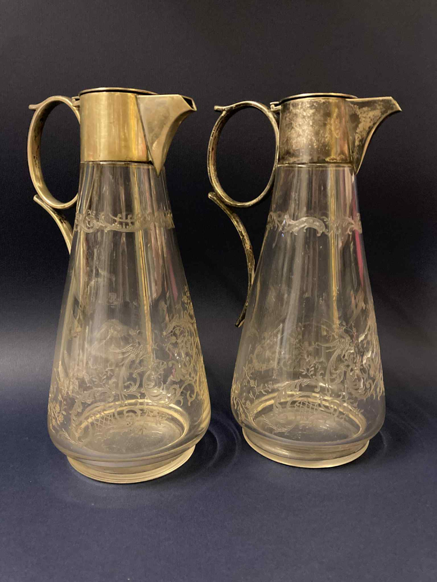 megőrzött karaffa pár, azaz kettő darab azonos sav maratott díszítéssel