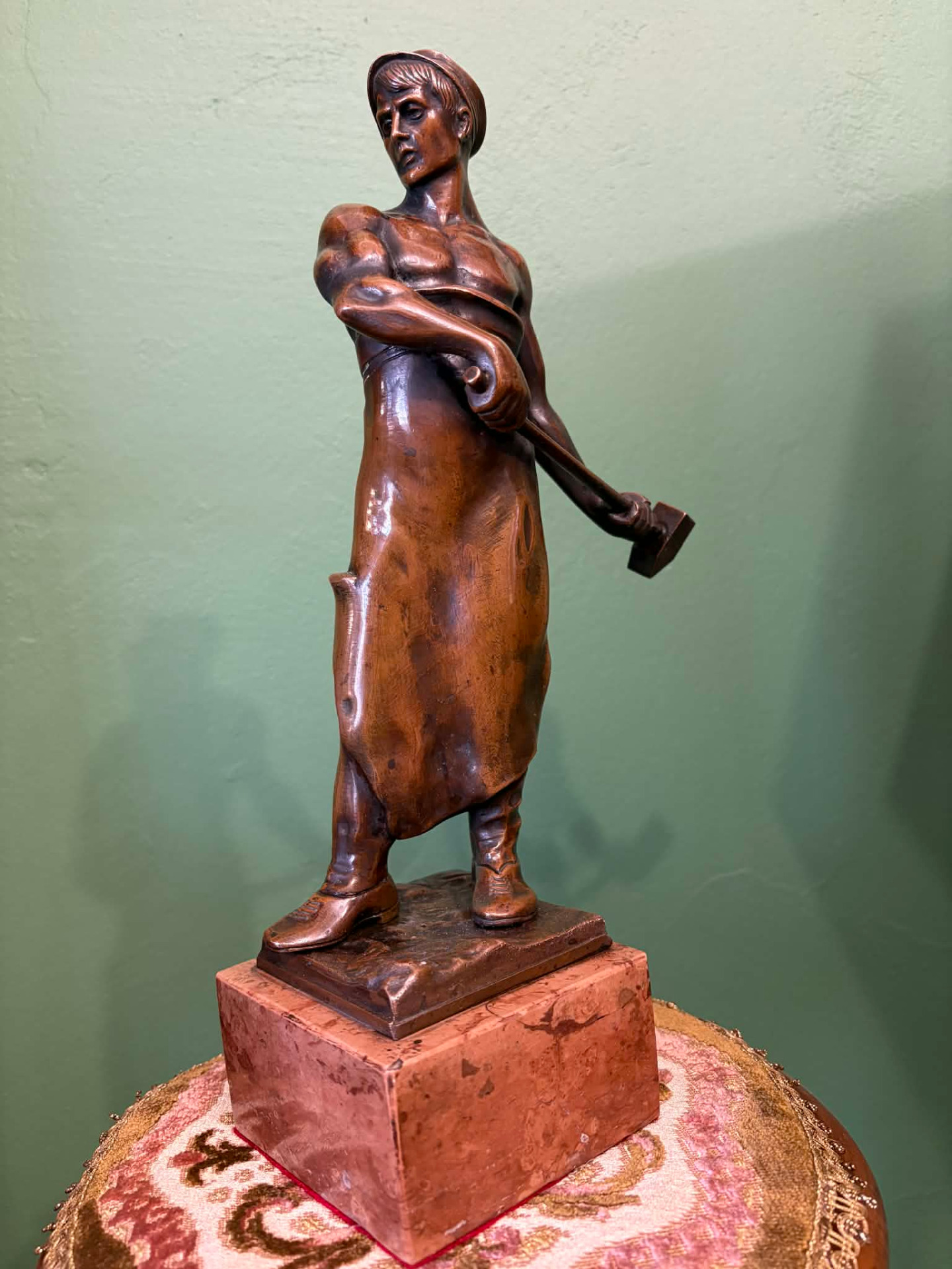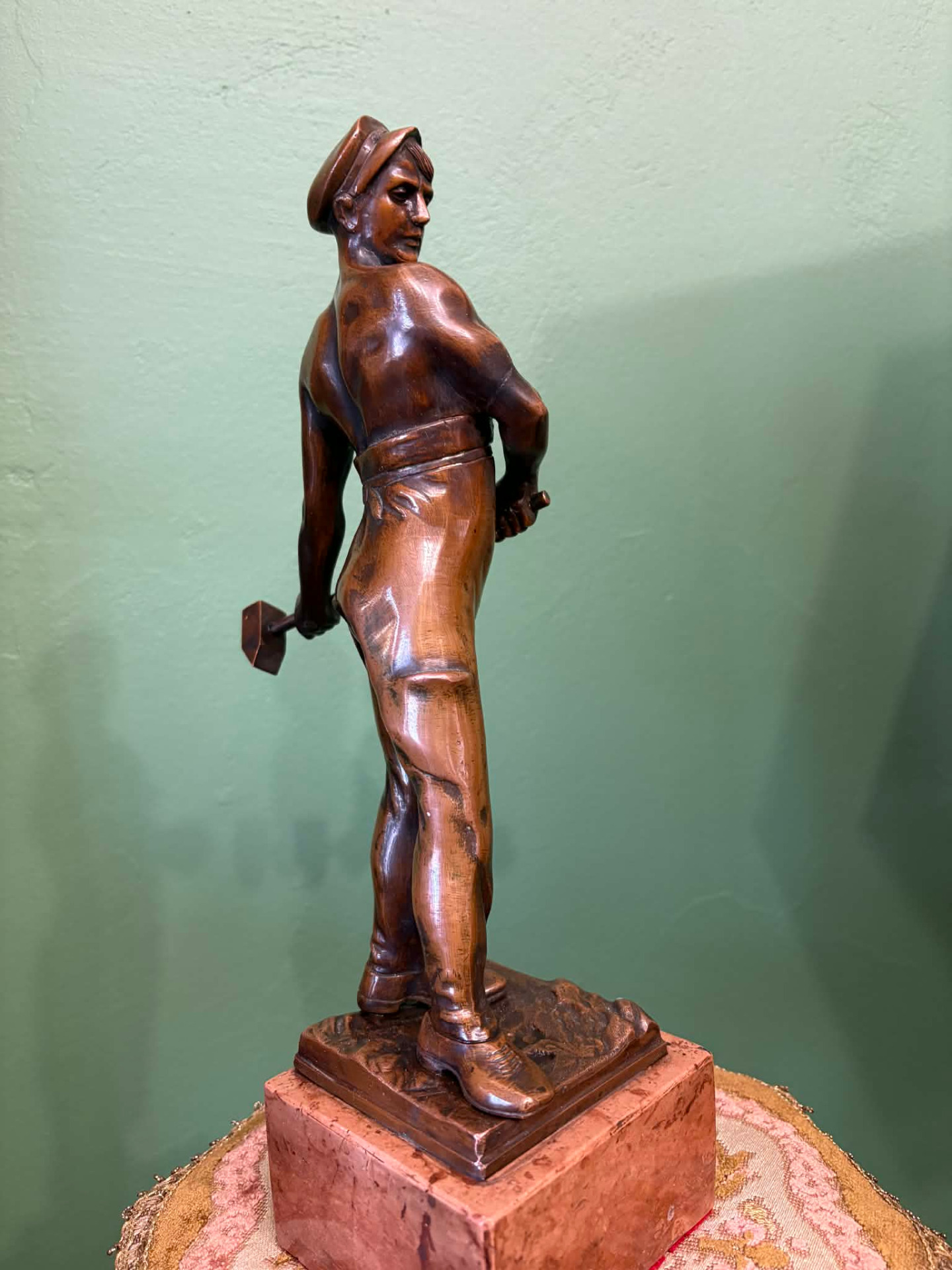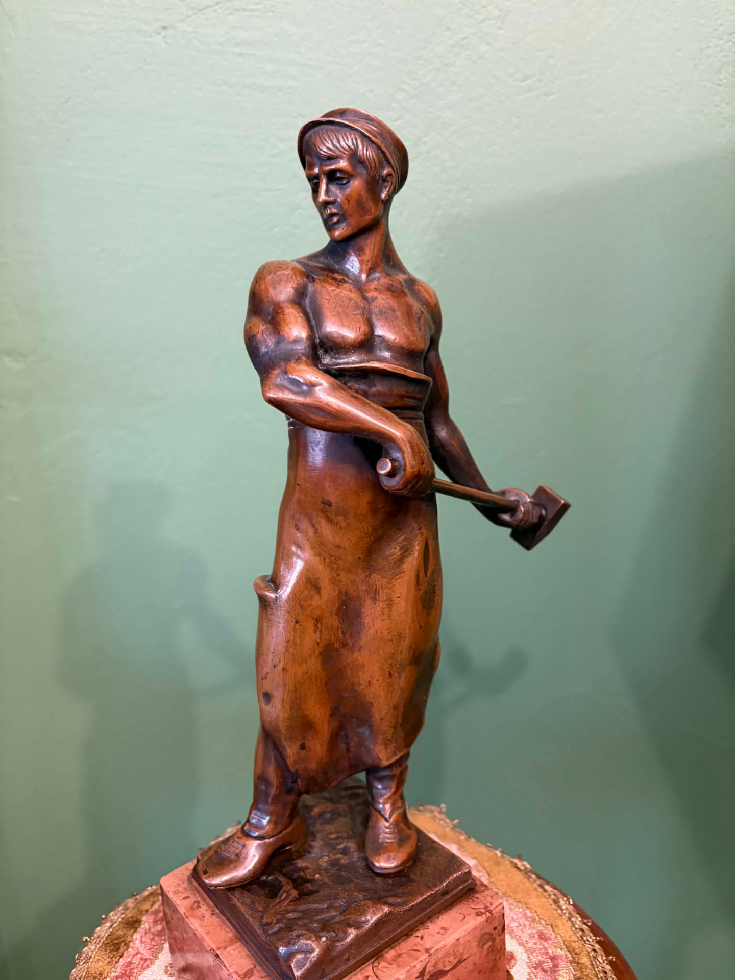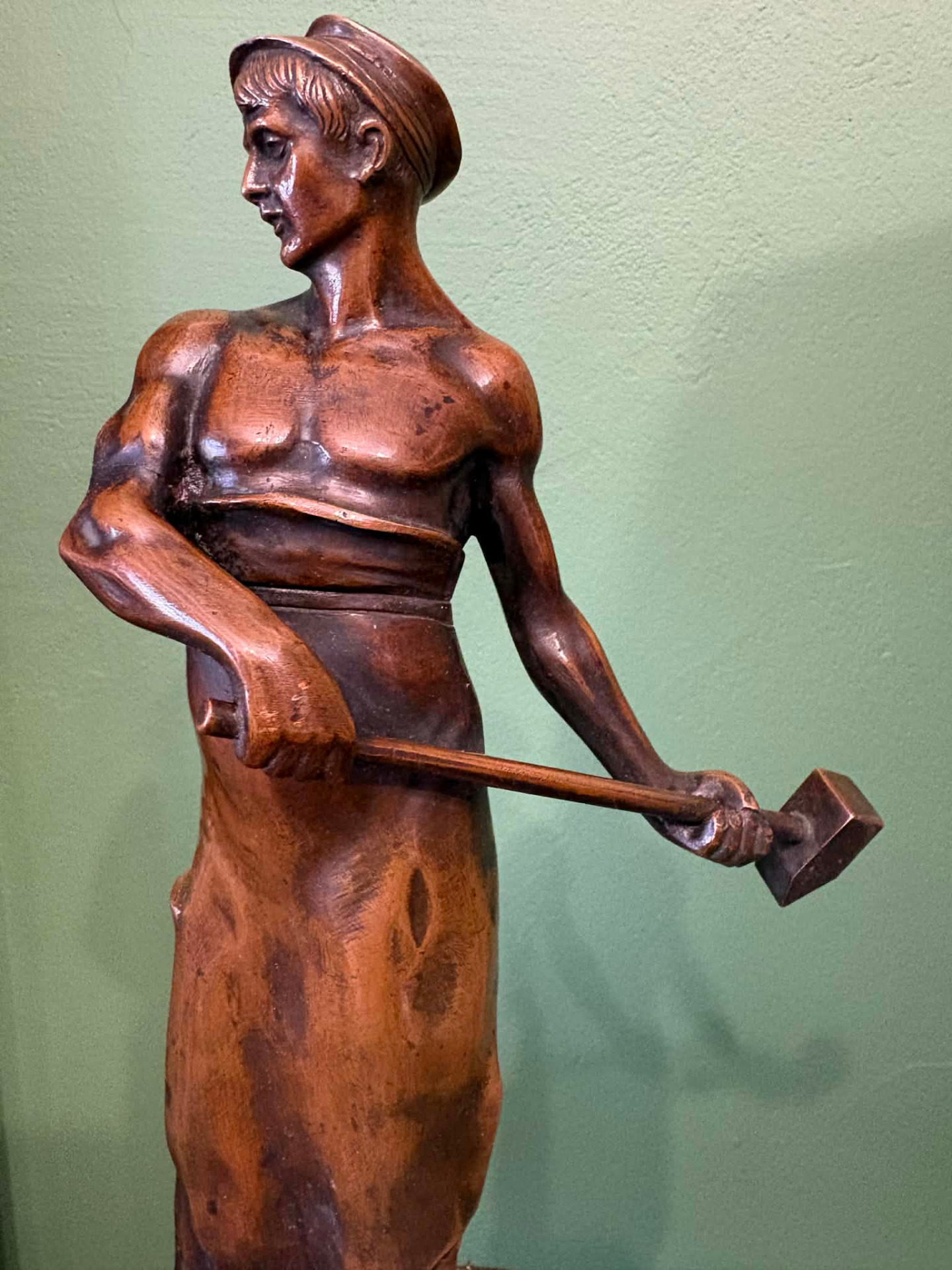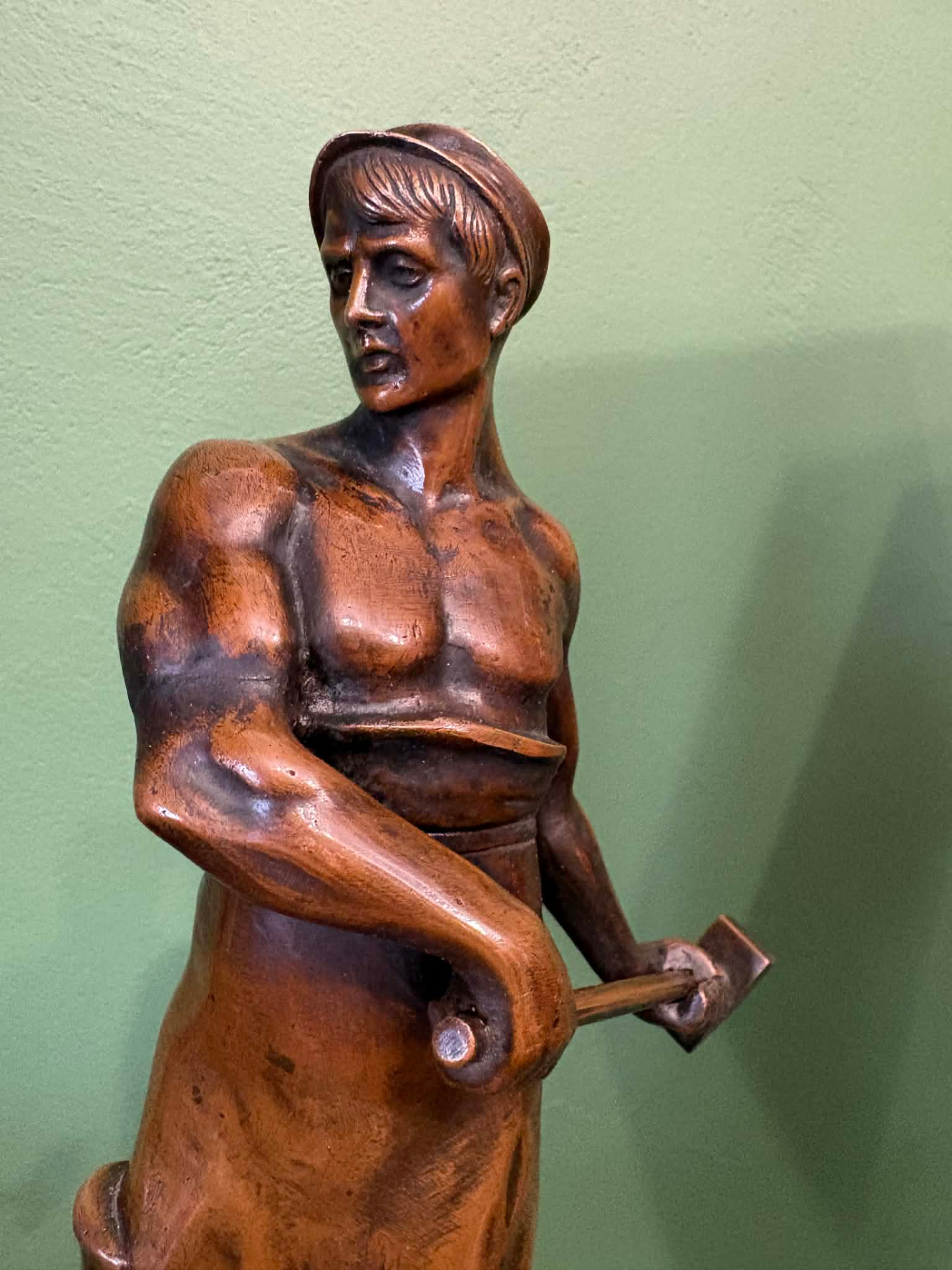 realizmus jegyében készülhetett szobor, egy munkás alakja. Anyaga öntött