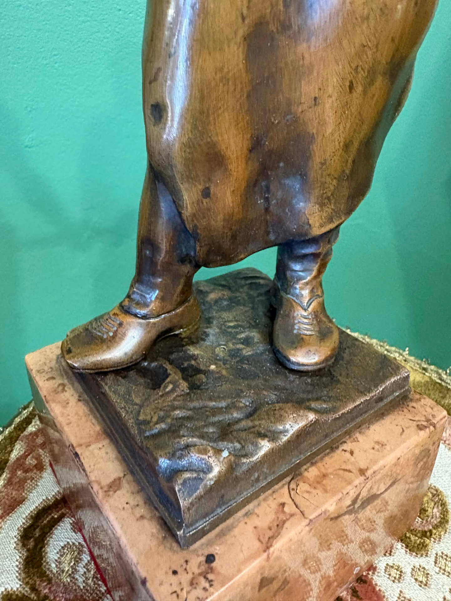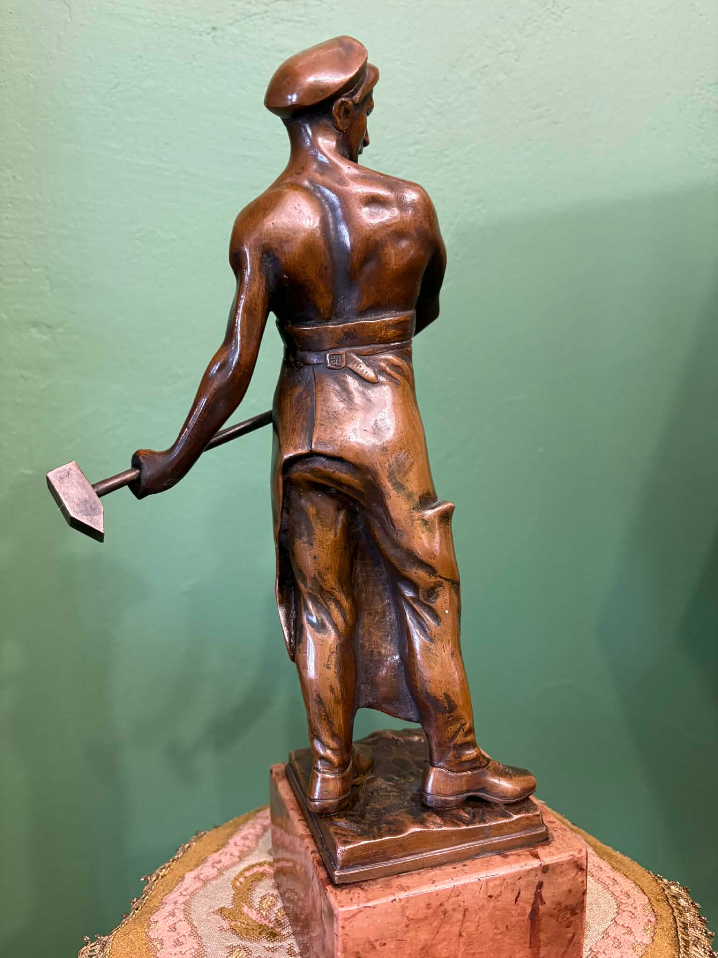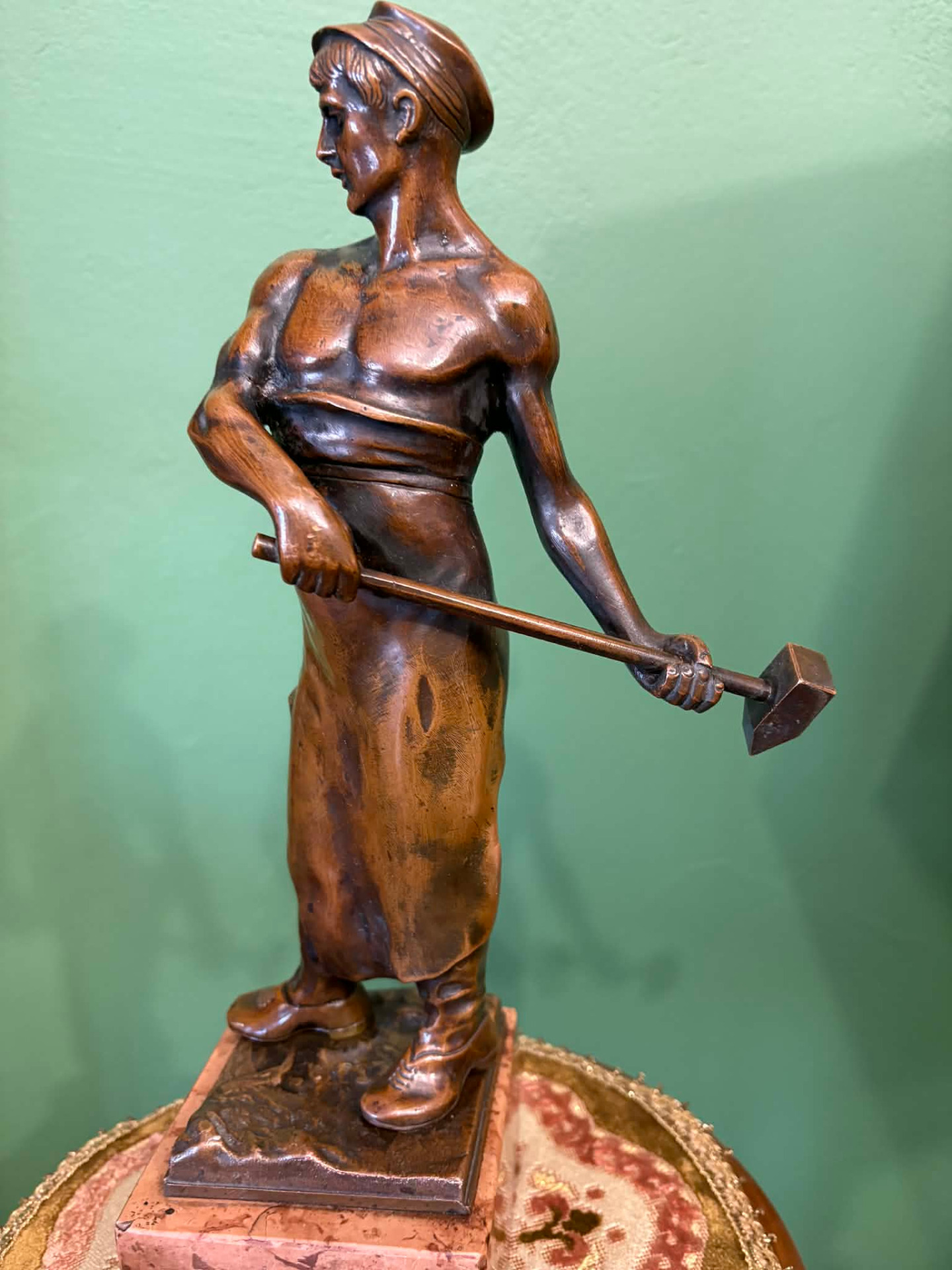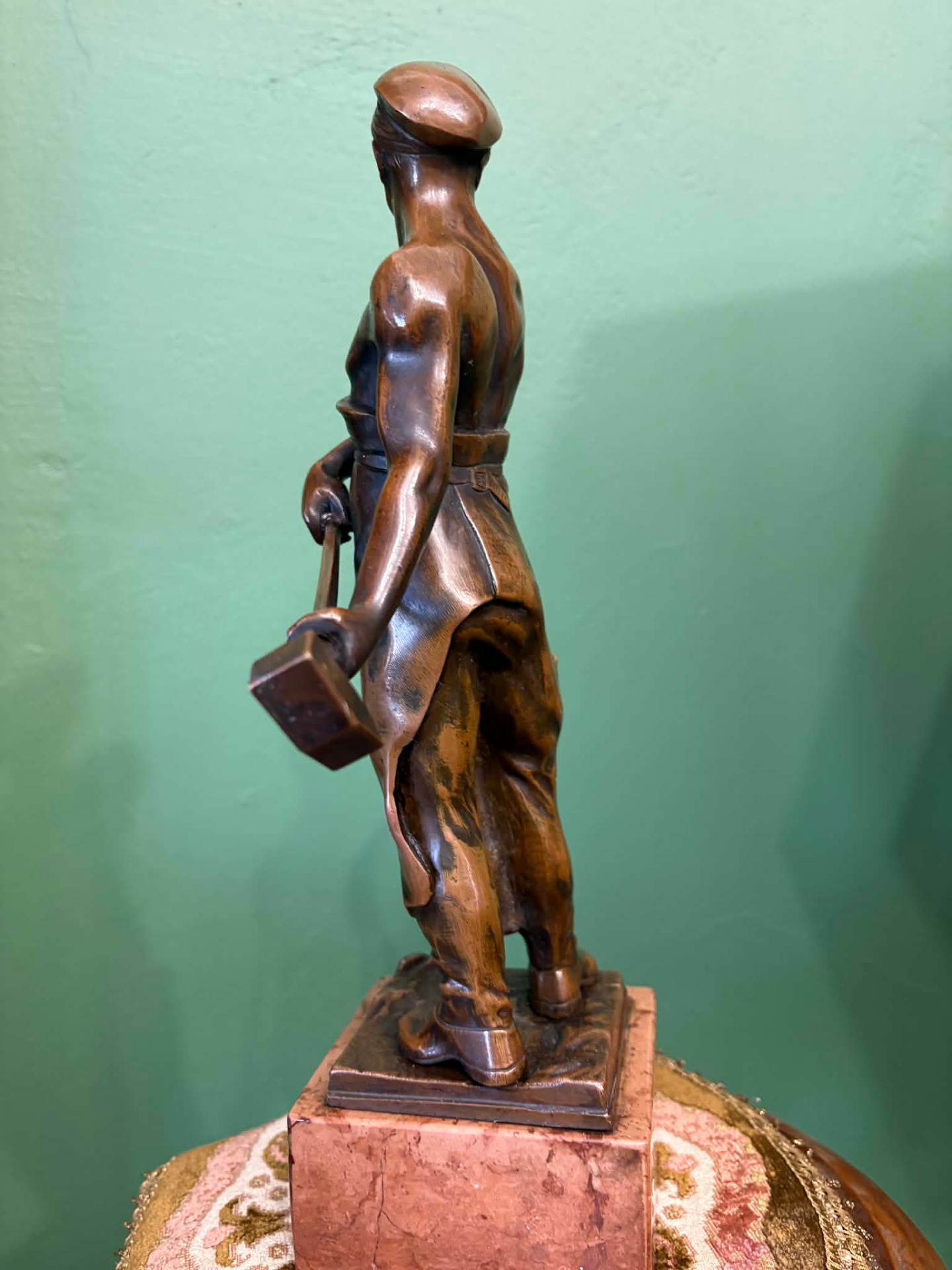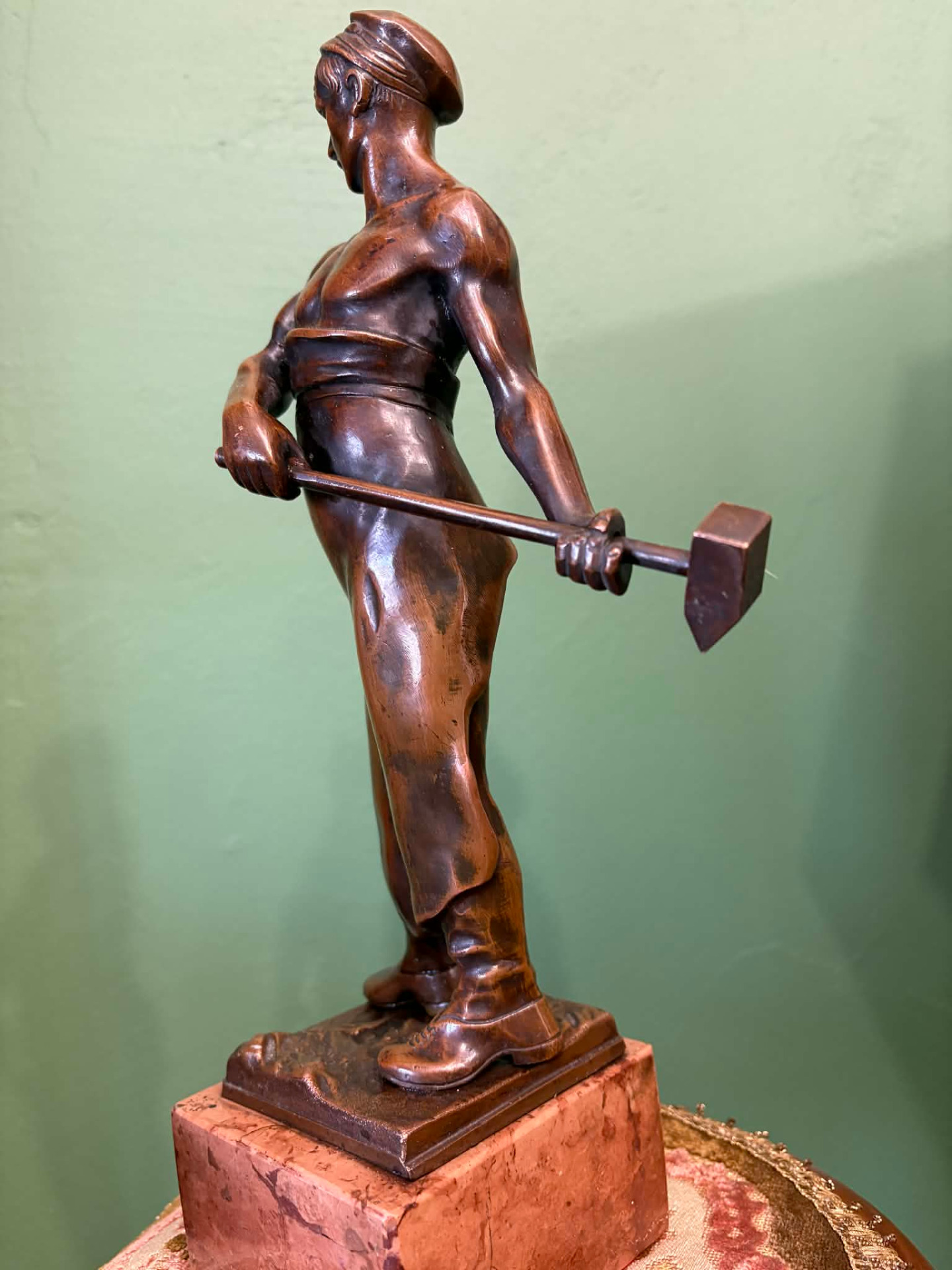 realizmus jegyében készülhetett szobor, egy munkás alakja. Anyaga öntött