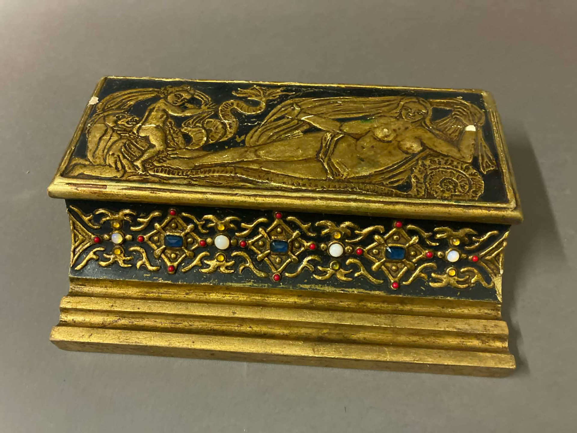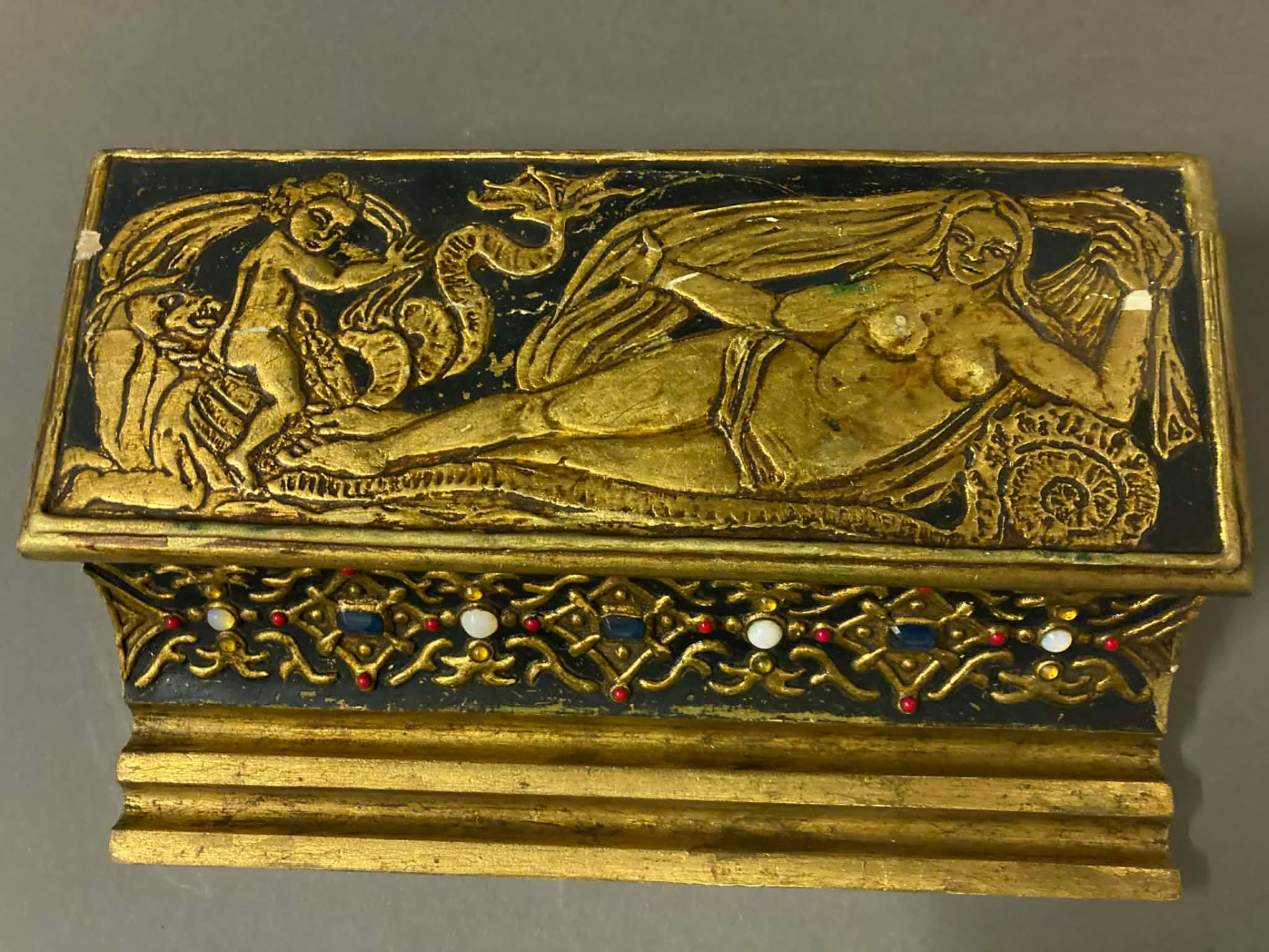 felnyitható fedelét mitológiai jelenet, fix alsó részét pedig a dús