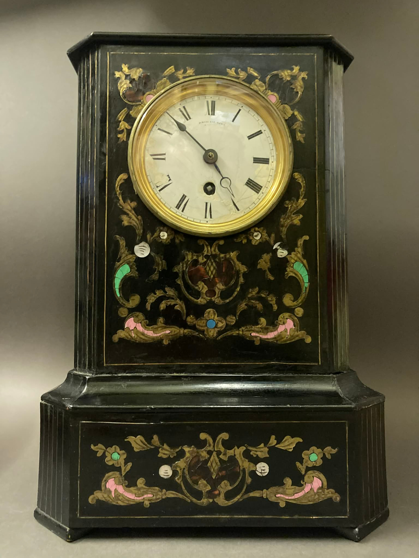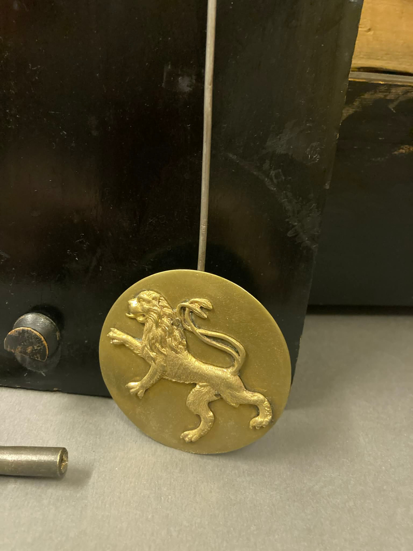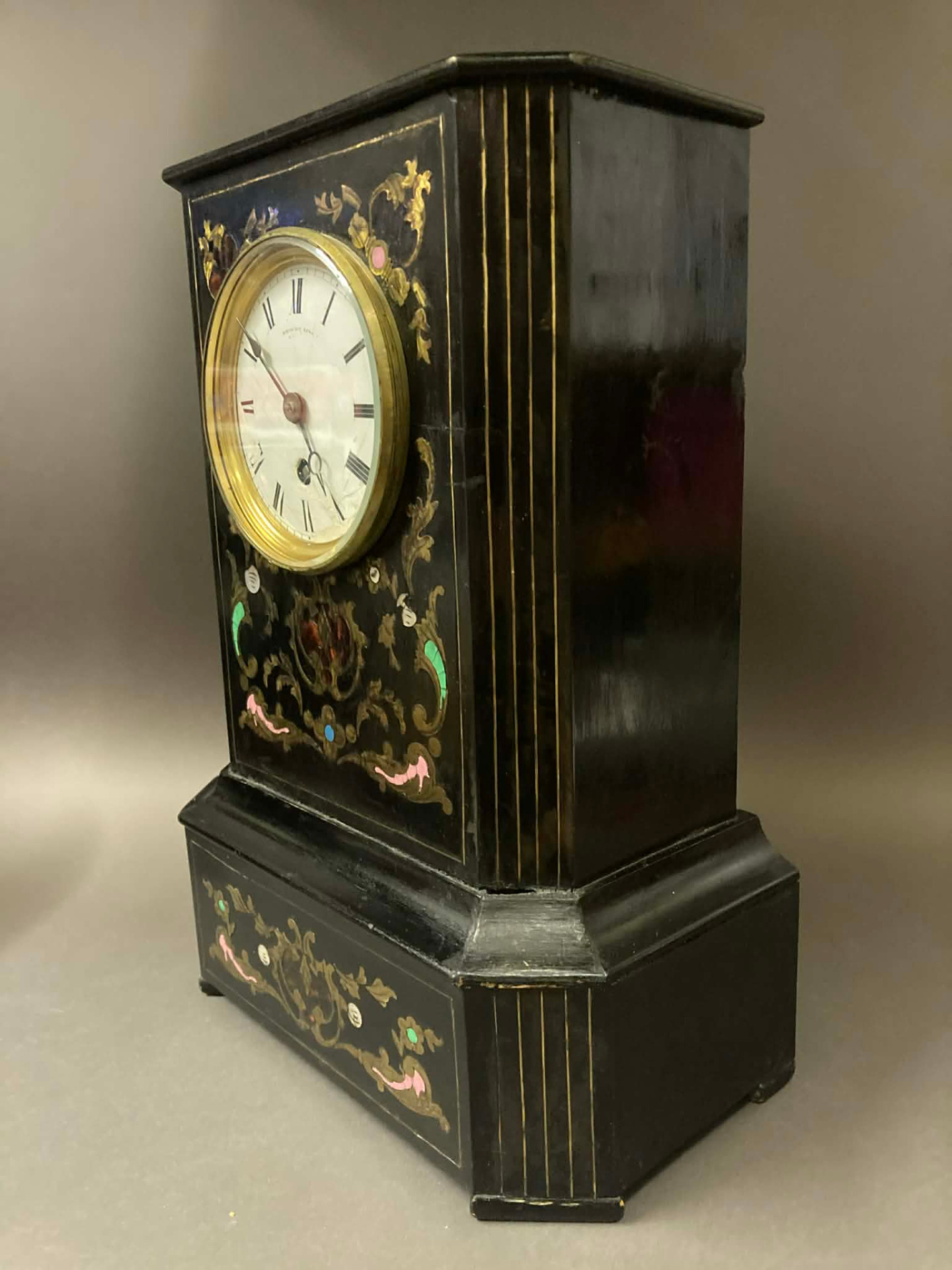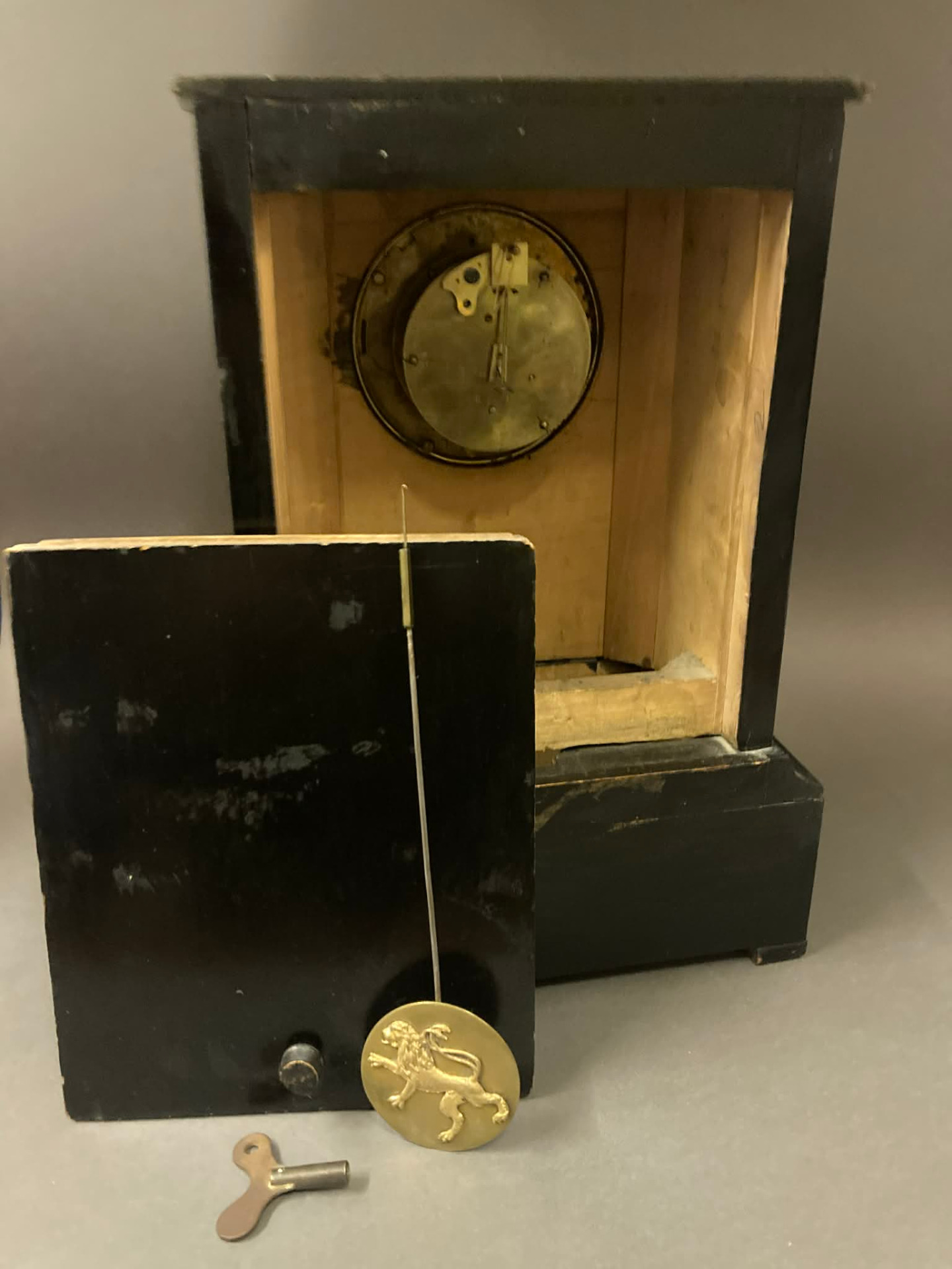 Antik, a tizenkilencedik század elején készülhetett, különleges boulle technikával díszített mechanikus kandalló óra ritkaság. fa tokozatát sárgaréz, zománc és teknőcpáncél berakás teszi igazán különlegessé. Javított zománcozott számlapján felirat foszlány látható, de ebből nem azonosítható a készítő. Mechanikus kulcs felhúzású szerkezete jelenleg nem jár, komplett elindul, de megáll, egy szervizelésre szorul, ha valaki működőképesen szeretné látni. Egy rendkívül különleges, nem kizárható hogy kettőszáz éves kandalló óra birtokosa lehet a megvásárlásával, mely egy neves történelmi családnál teljesített eddig szolgálatot!