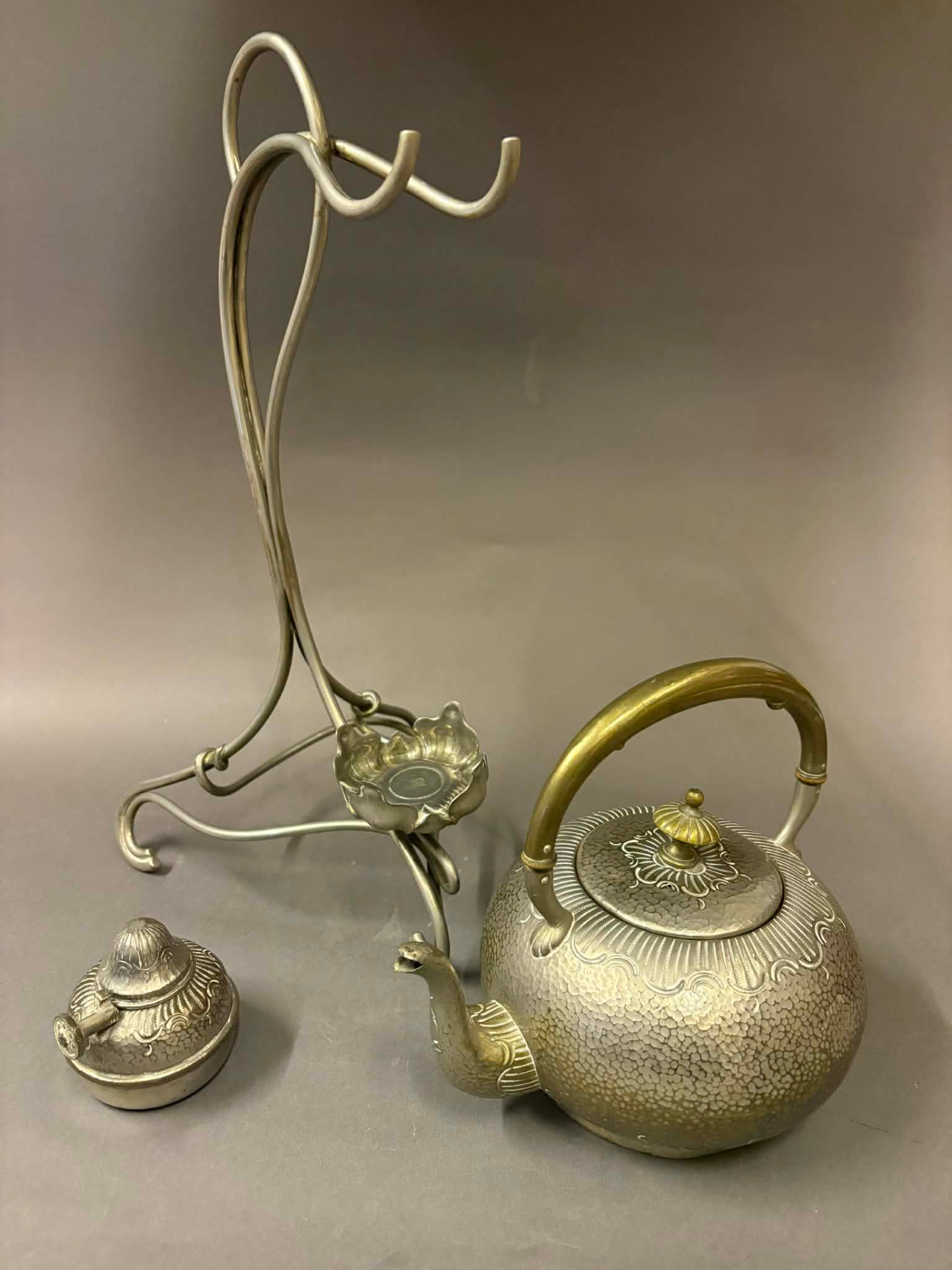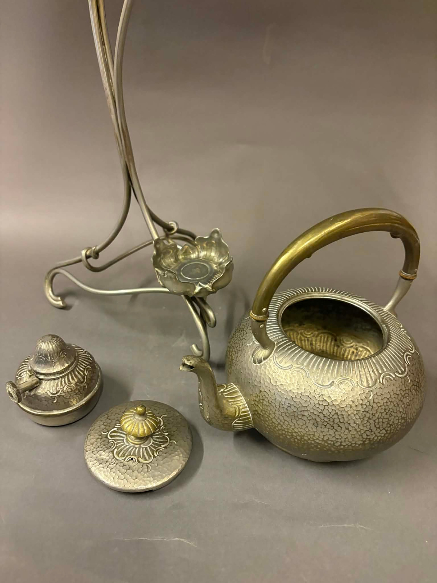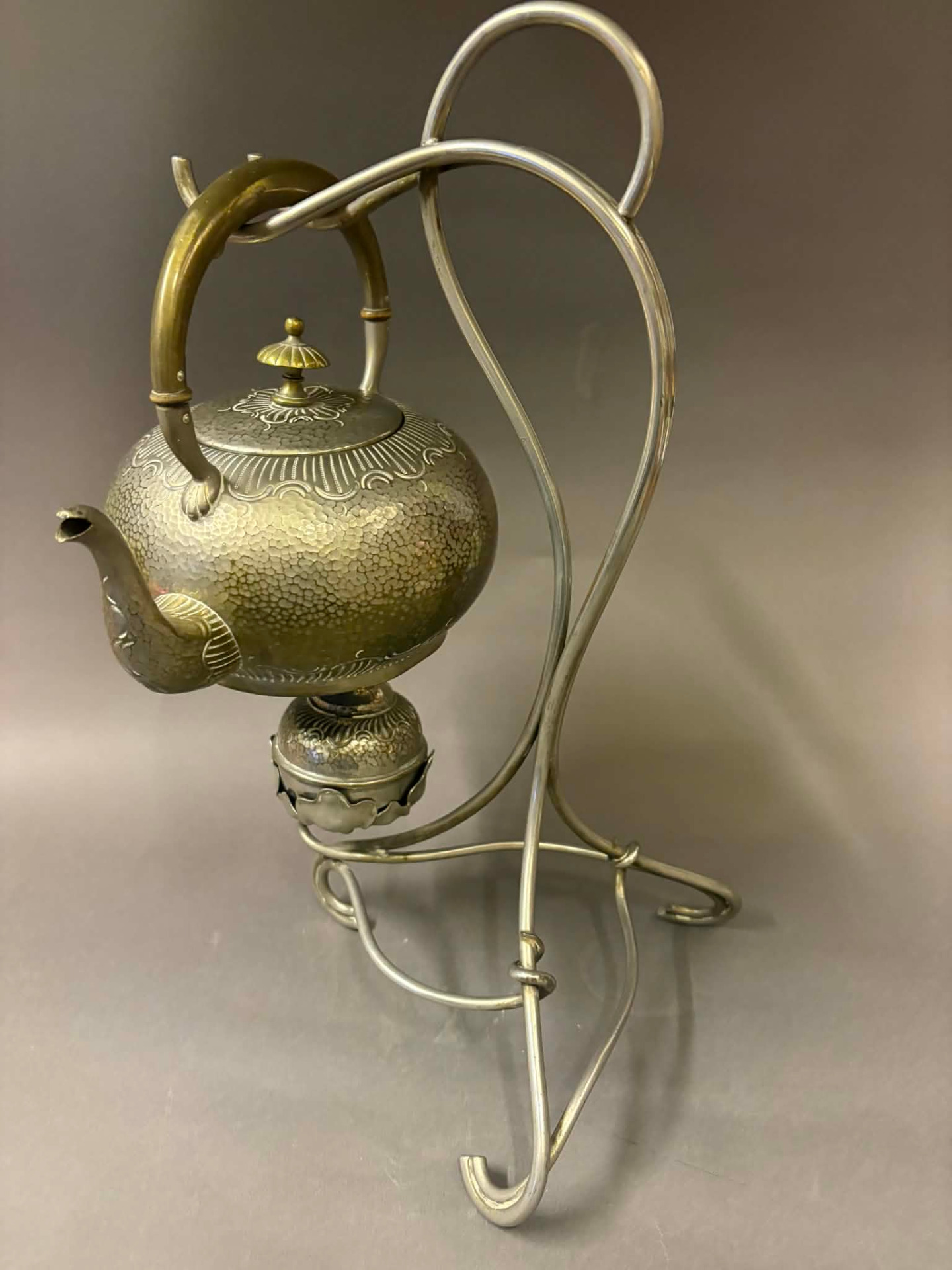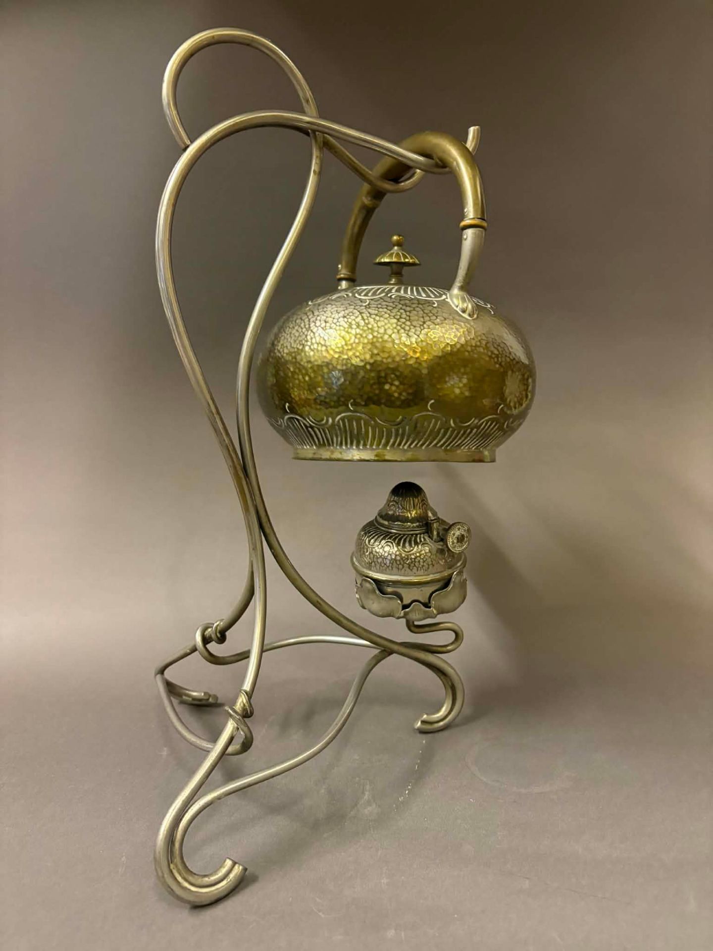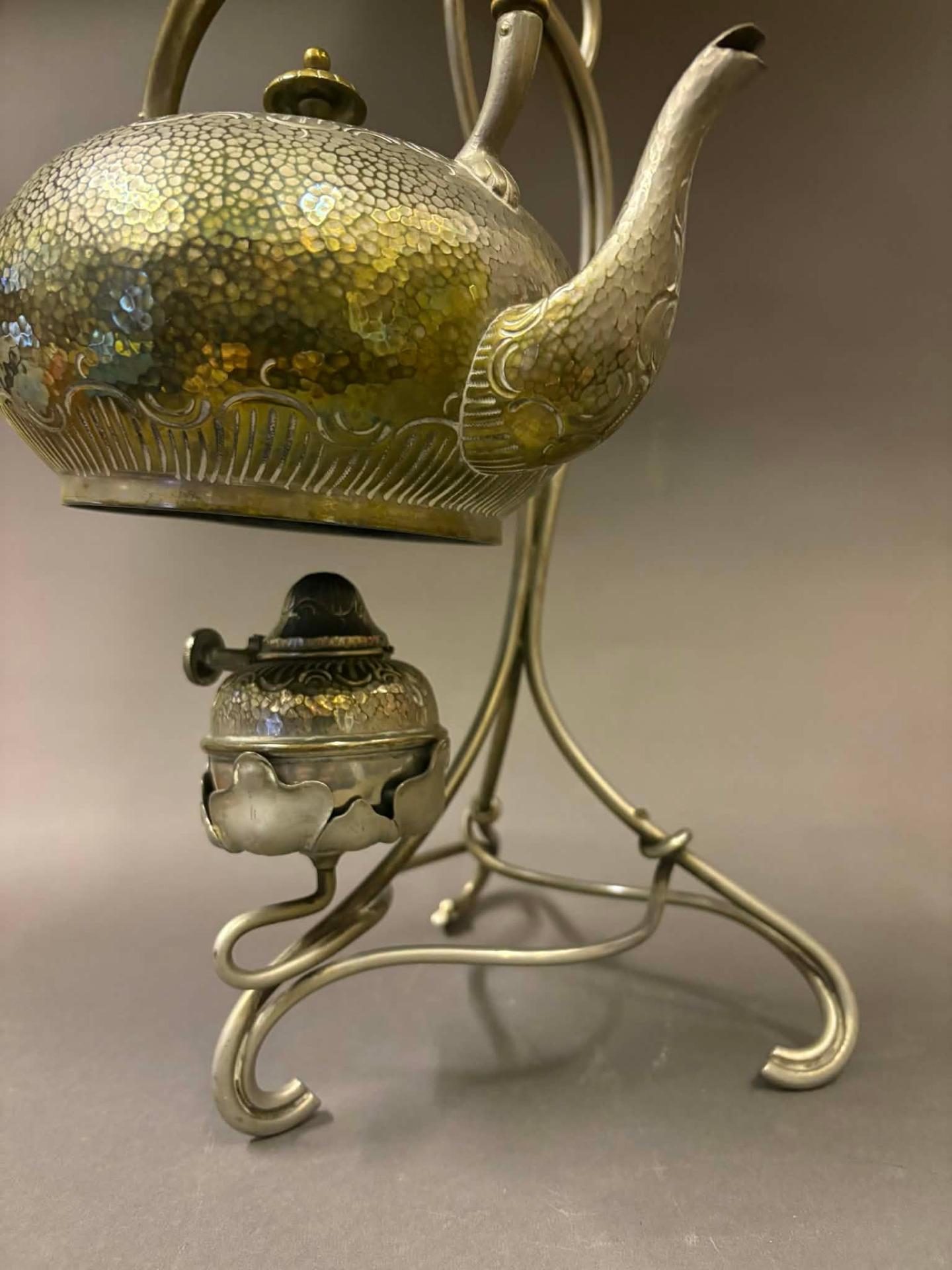 szecessziós tea vagy kávé kínáló, melegen tartó szett! Állvány, kanna és