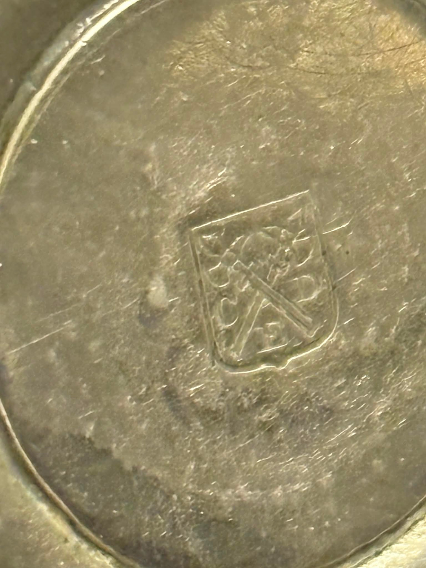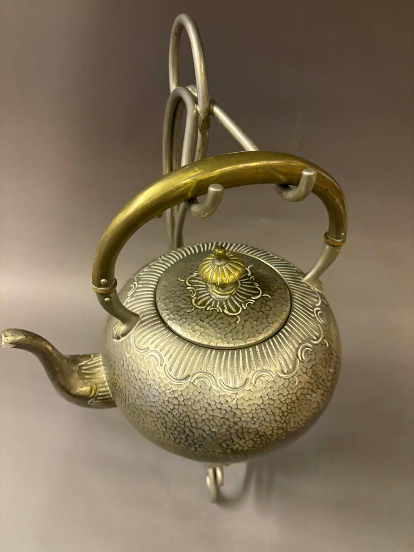 állványon fotózott egykori cégjelzéssel! A kanna ezüstözött sárgaréz,