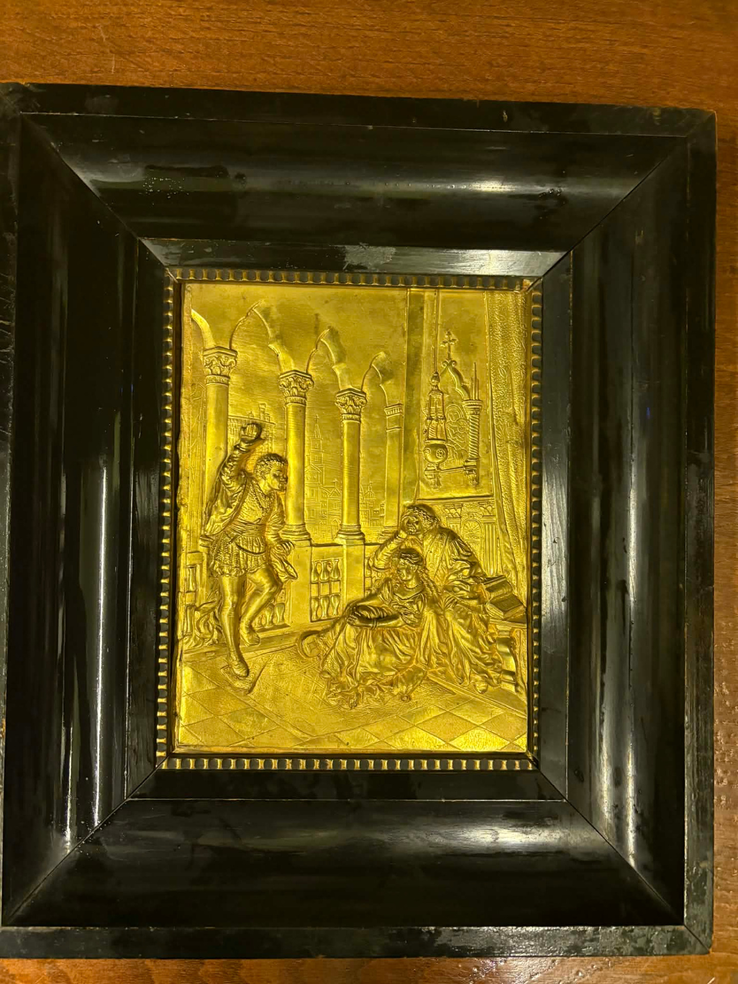 Antik keretezett falikép / tűzaranyozott relief - "Othello"
