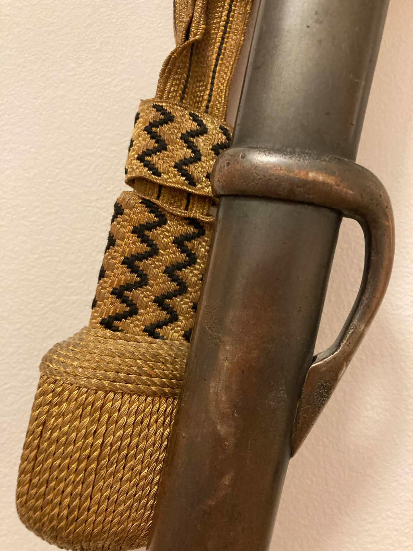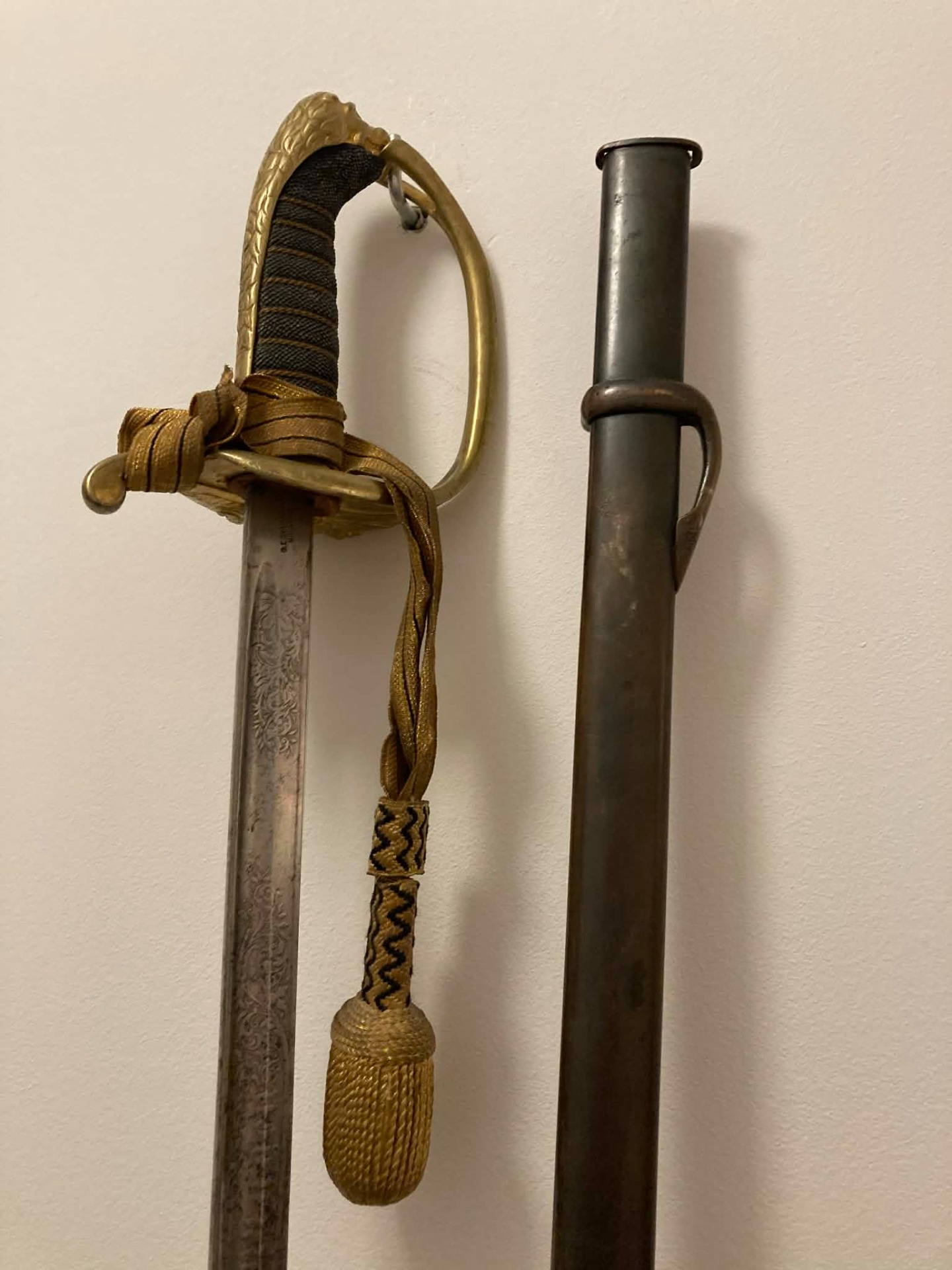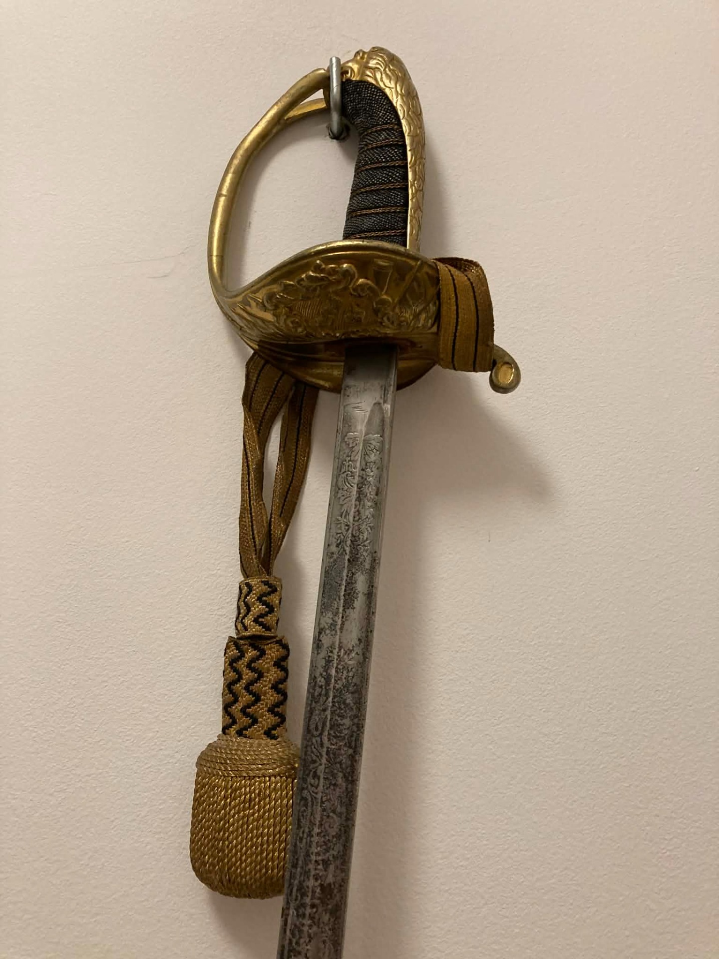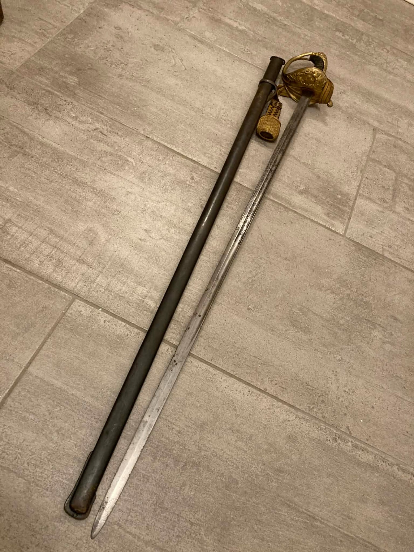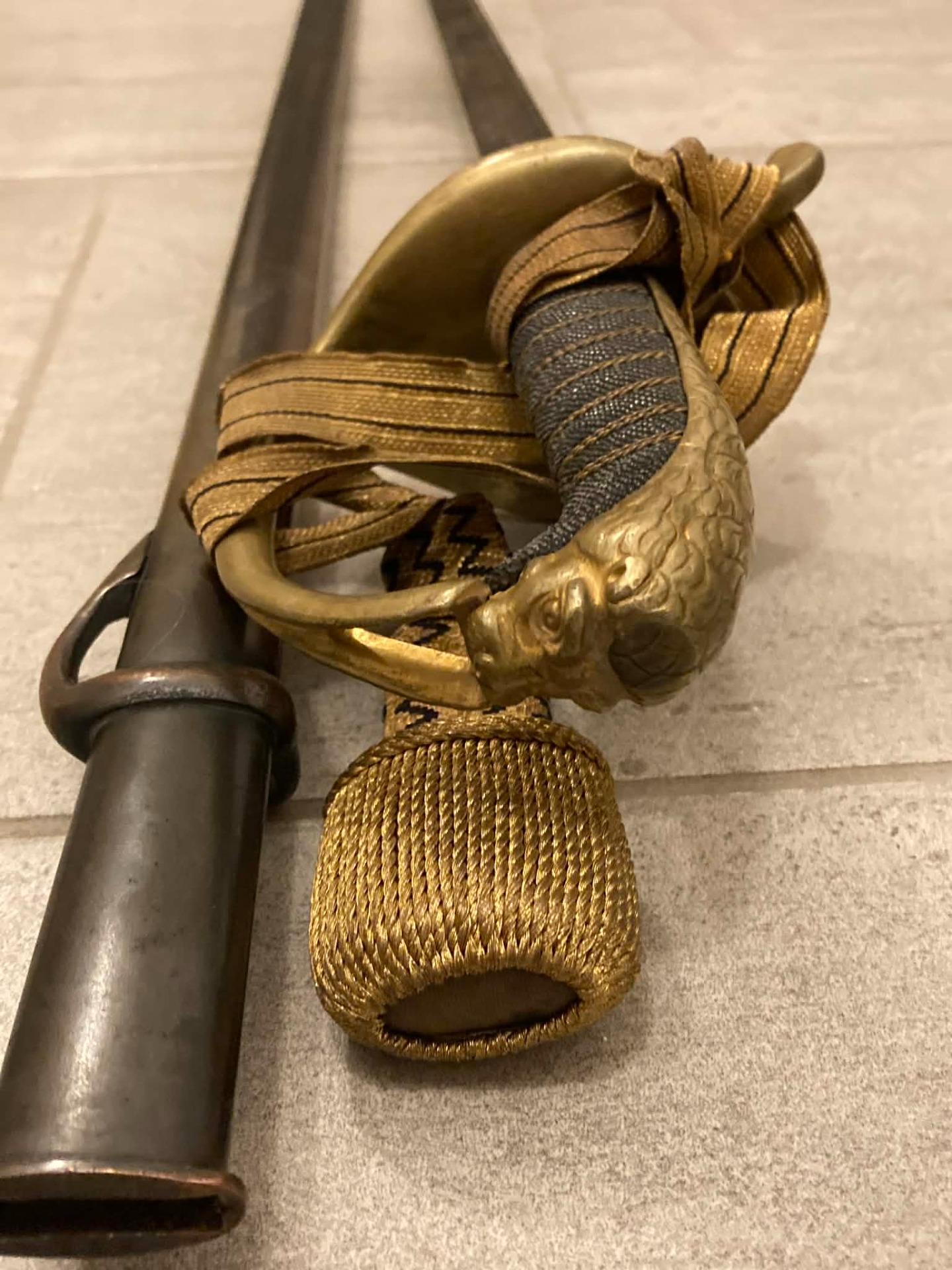 Antik, véleményünk és elérhető adatbázisok alapján az 1800-as évek második felében készült svéd gyalogtiszti kard, hüvelyében, kardbojttal, remek állapotban megőrizve! Oroszlános rájabőr sárgaréz markolattal, díszes jelzett pengével mattított hüvelyében, markolat védőjén a három koronás svéd címerpajzs látható! Díszes pengéjén a neves svéd gyártó, a Mölntorpban működő G.E. Svalling & Co beütött cégjele olvasható! Csodaszép darab, mely remek dekoráció és komoly gyűjtői példány is egyben!