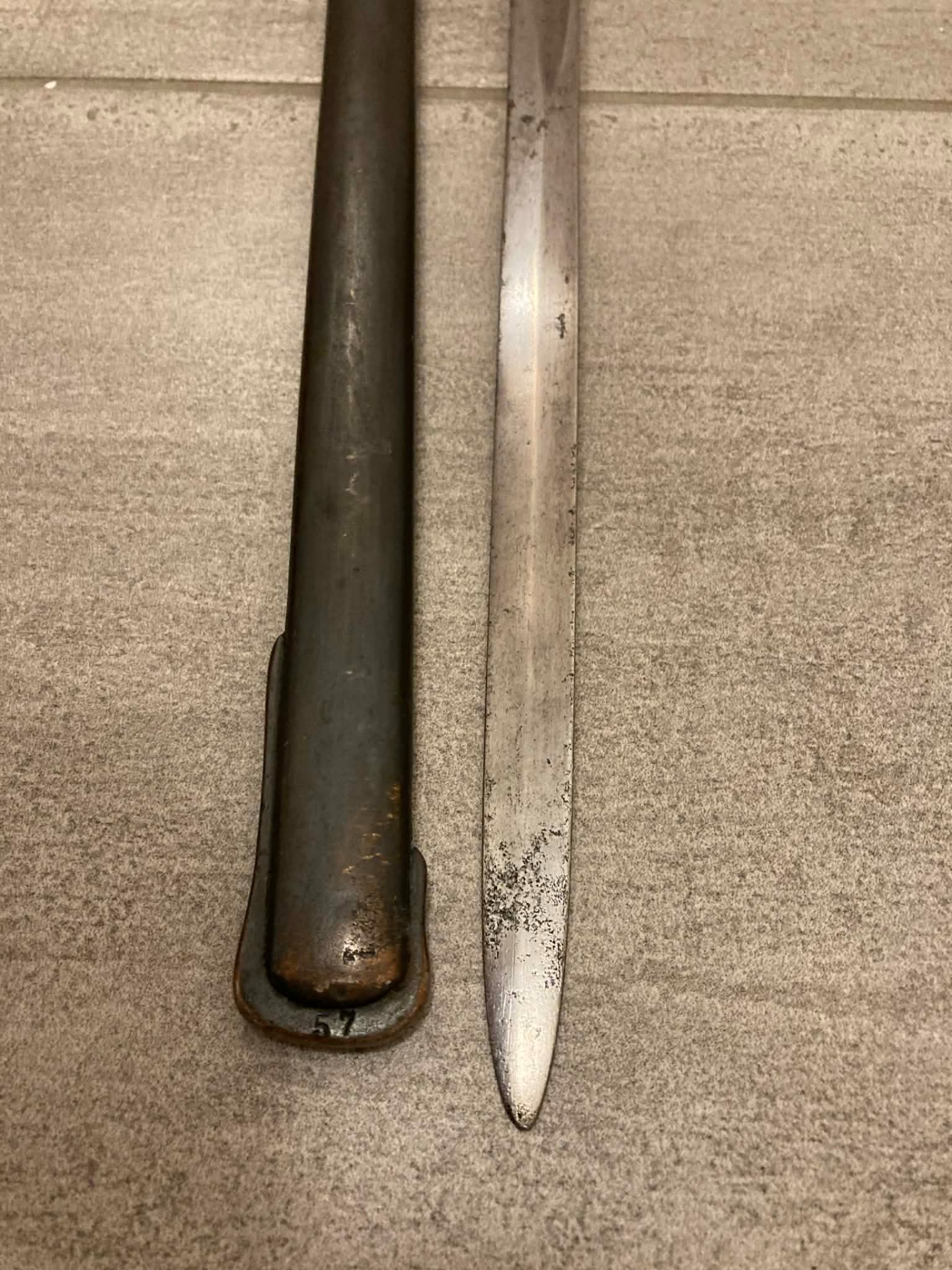 Teljes méret hüvelyében: 95 x 11 cm. /csak a kard: 91 x 11 cm. / penge: 1.9 x 78 cm.