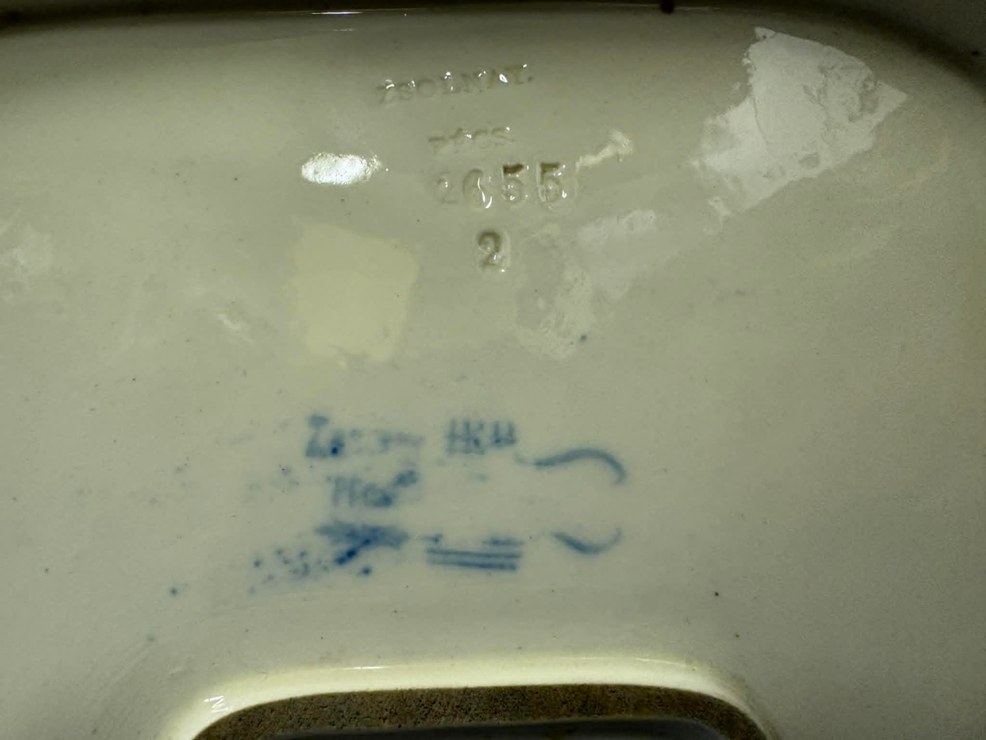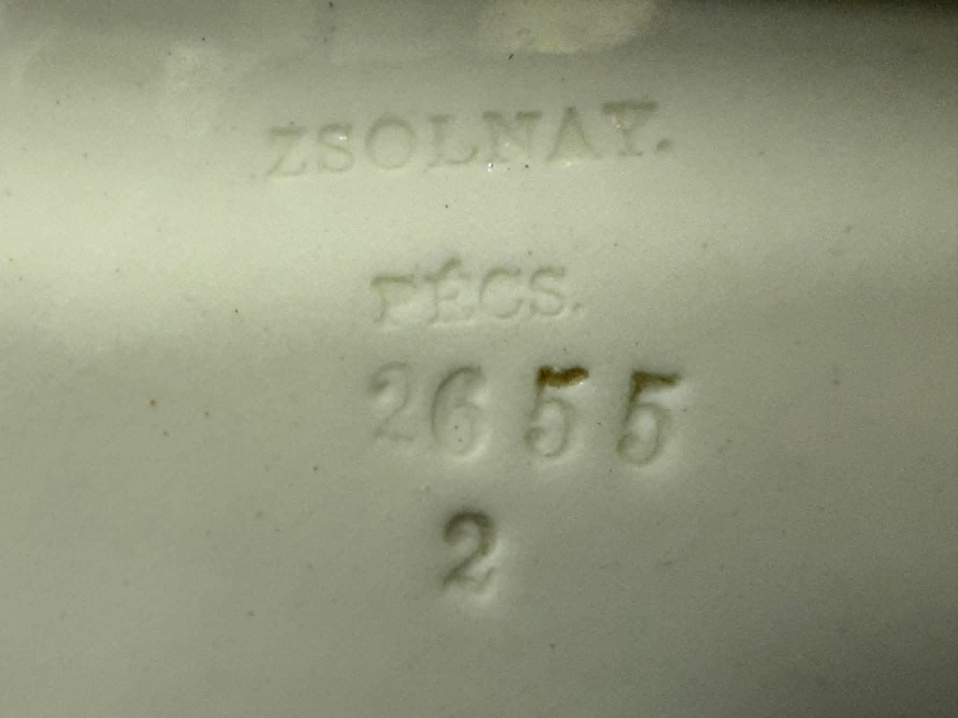 ZSOLNAY felirat és formaszám, valamint festett vagy bélyegzett kék