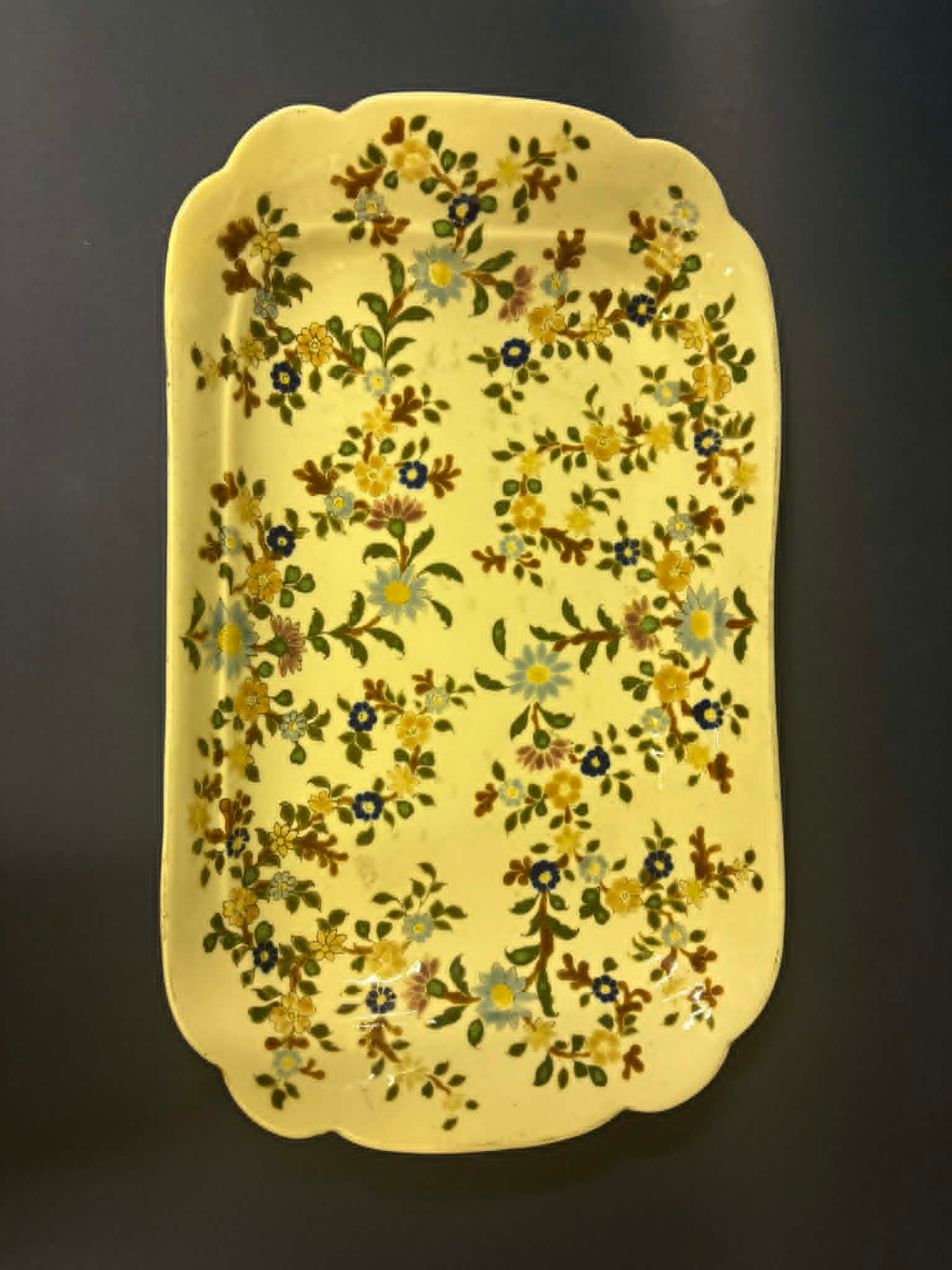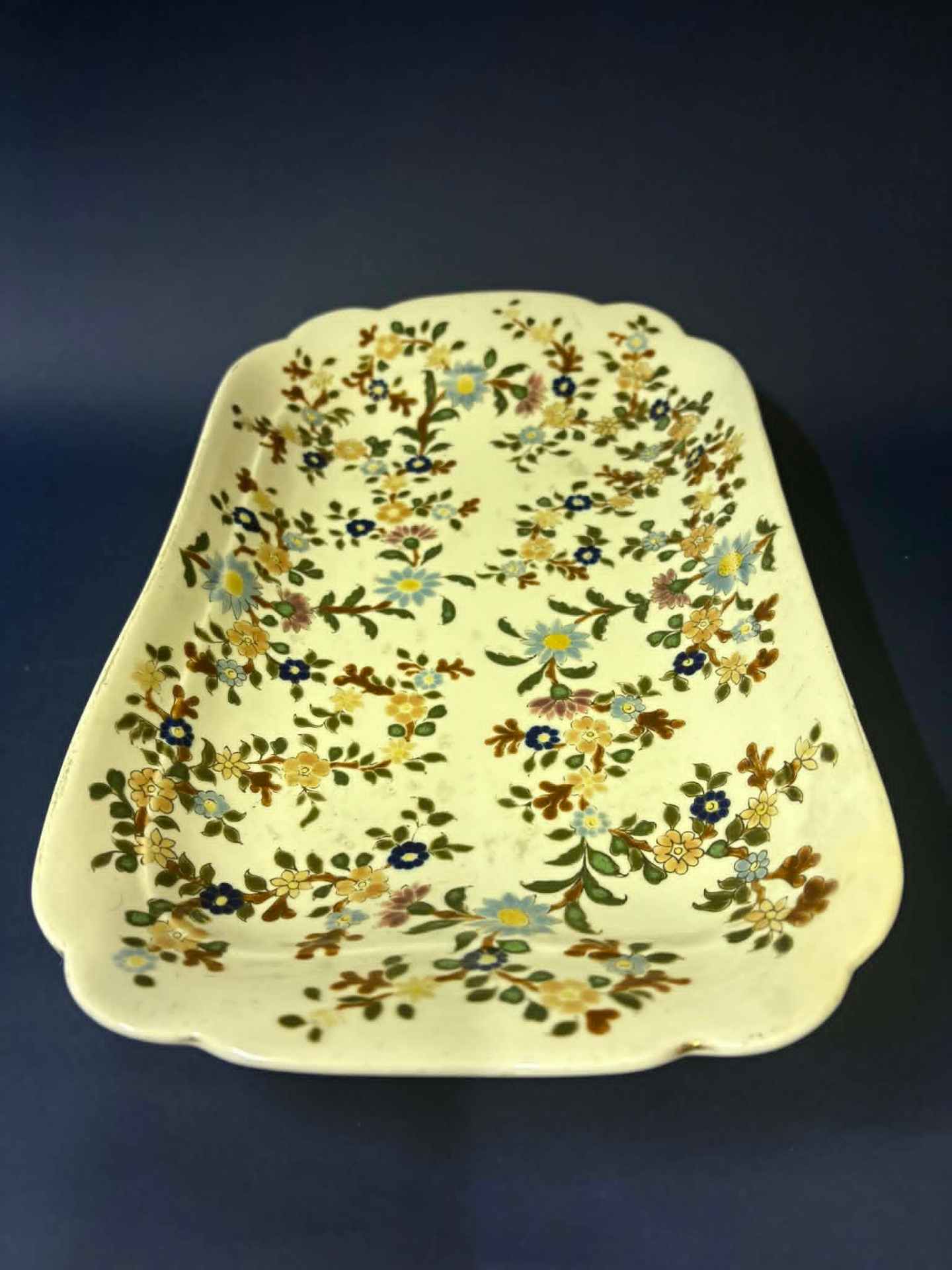 készült Zsolnay porcelán kínálótál, egy rendkívül bájos virág dekorral