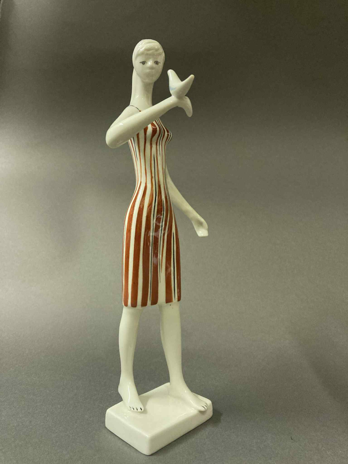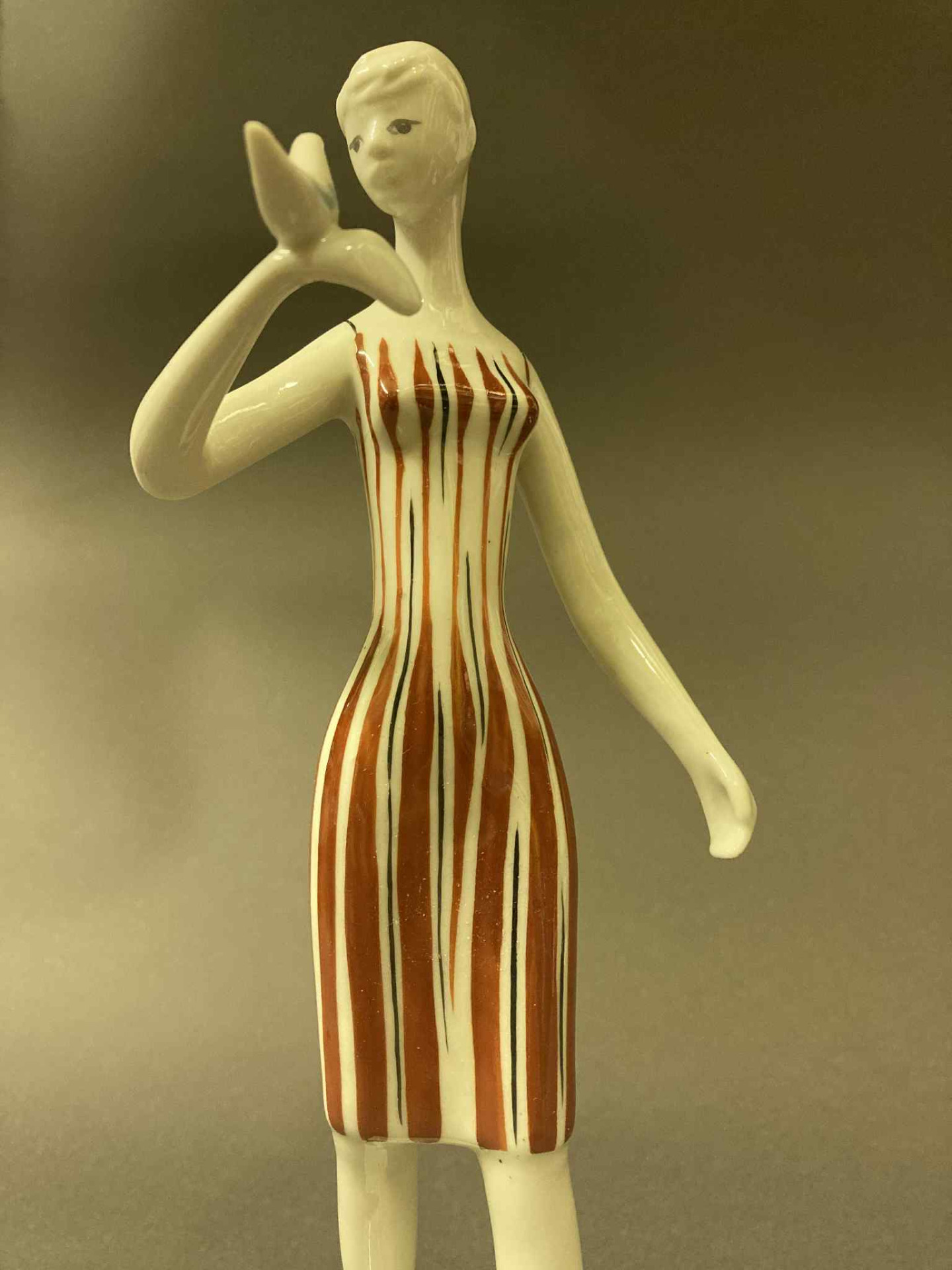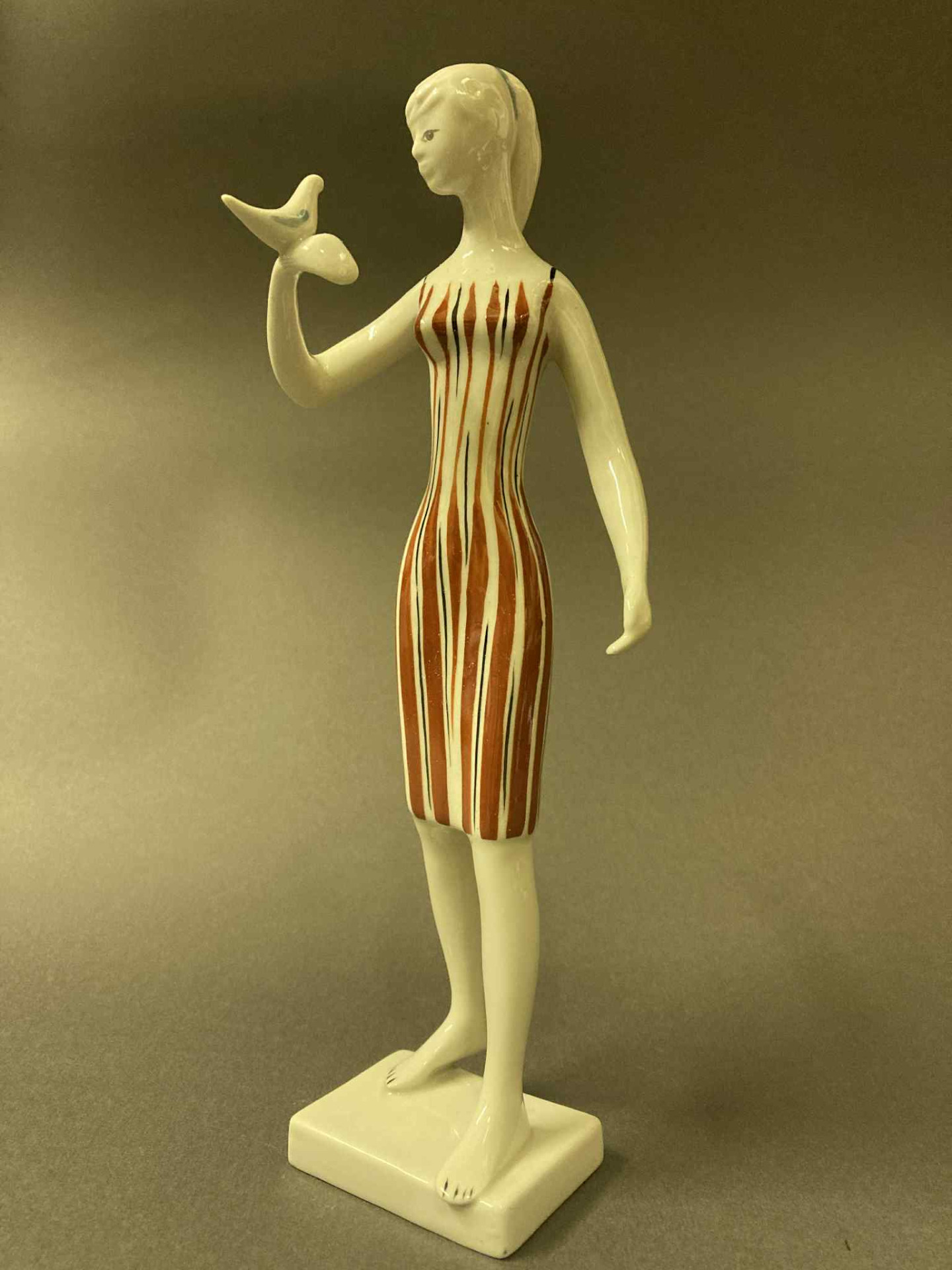 Drasche-Kőbánya / N. Szontágh Éva retro porcelán figura - "Fiatal hölgy kezén madárral"