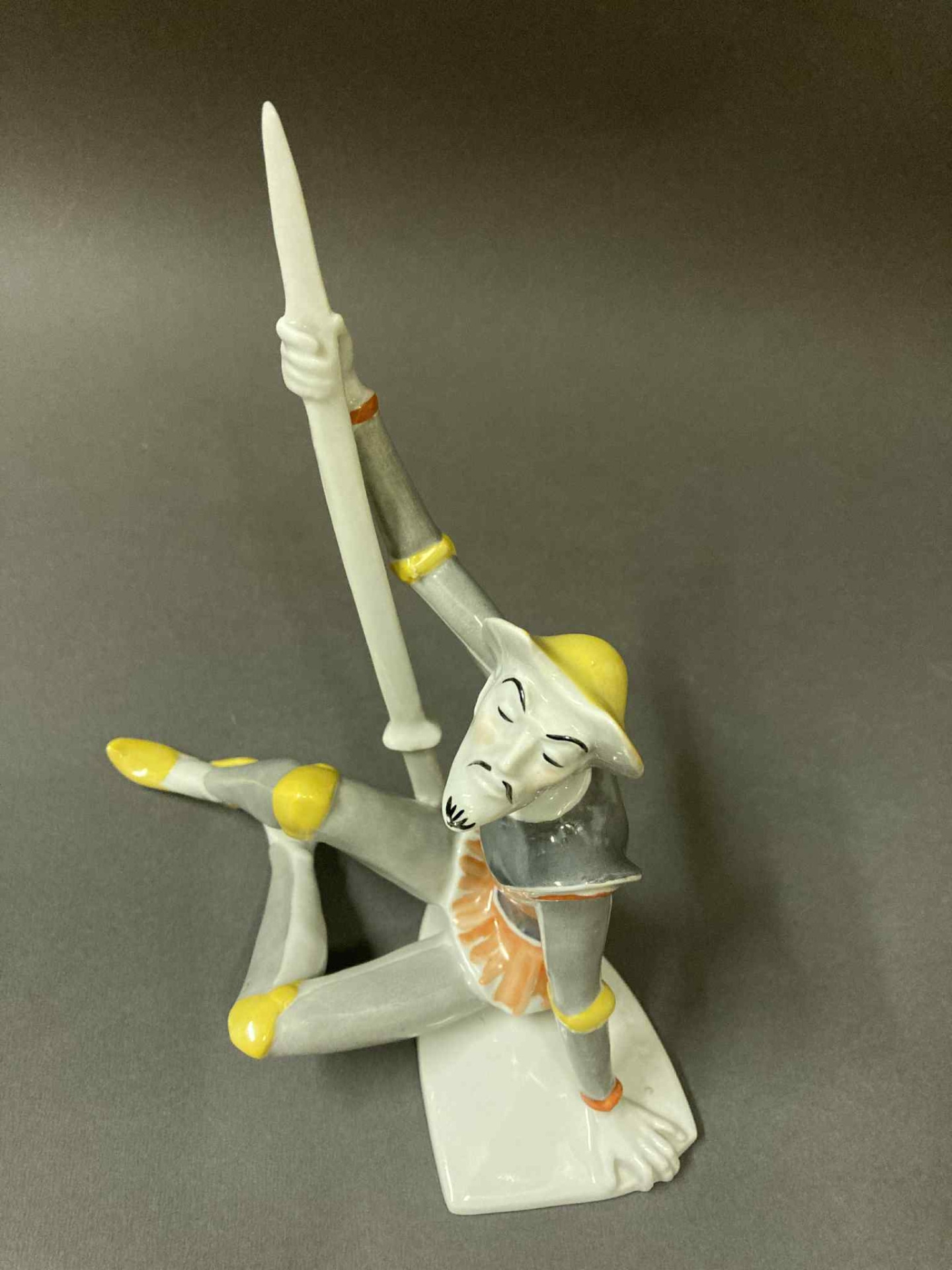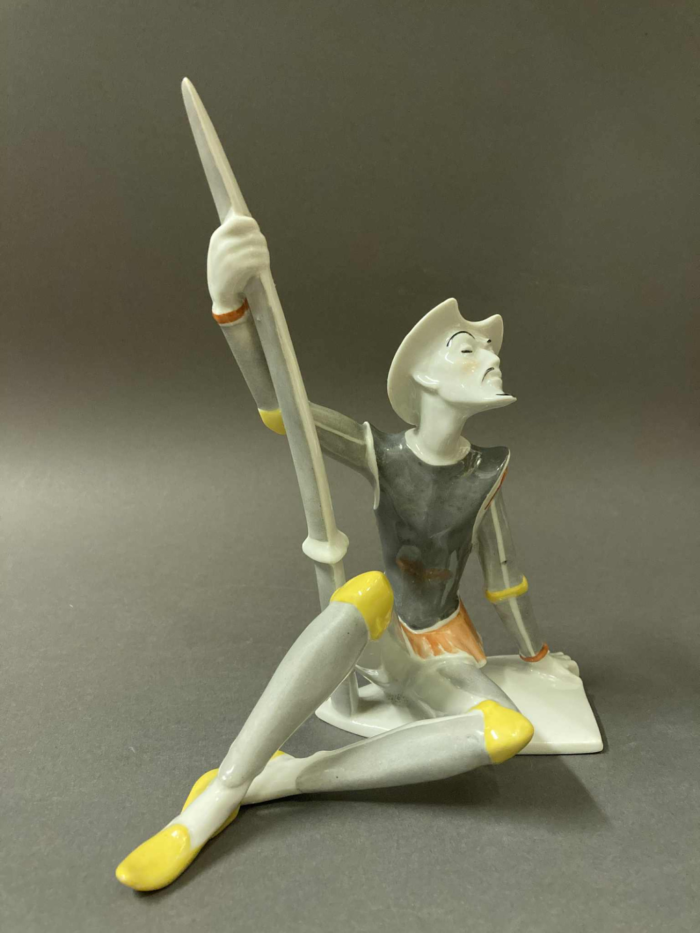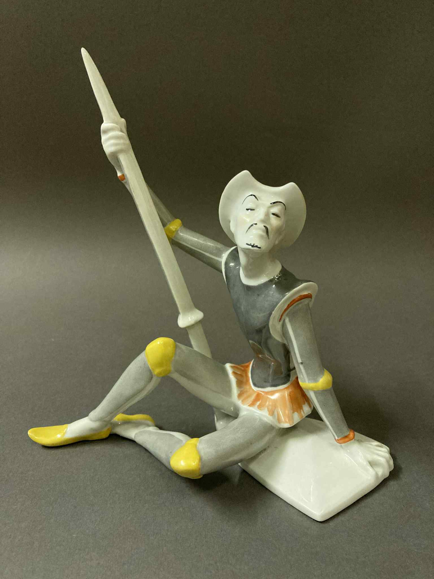 kisplasztika, a lándzsájára támaszkodó Don Quijote alak ábrázolása. Szép