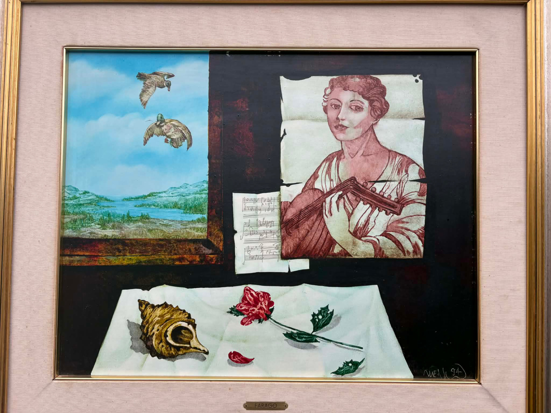 1994-ben készült meglehetősen különleges keretezett olajfestmény,