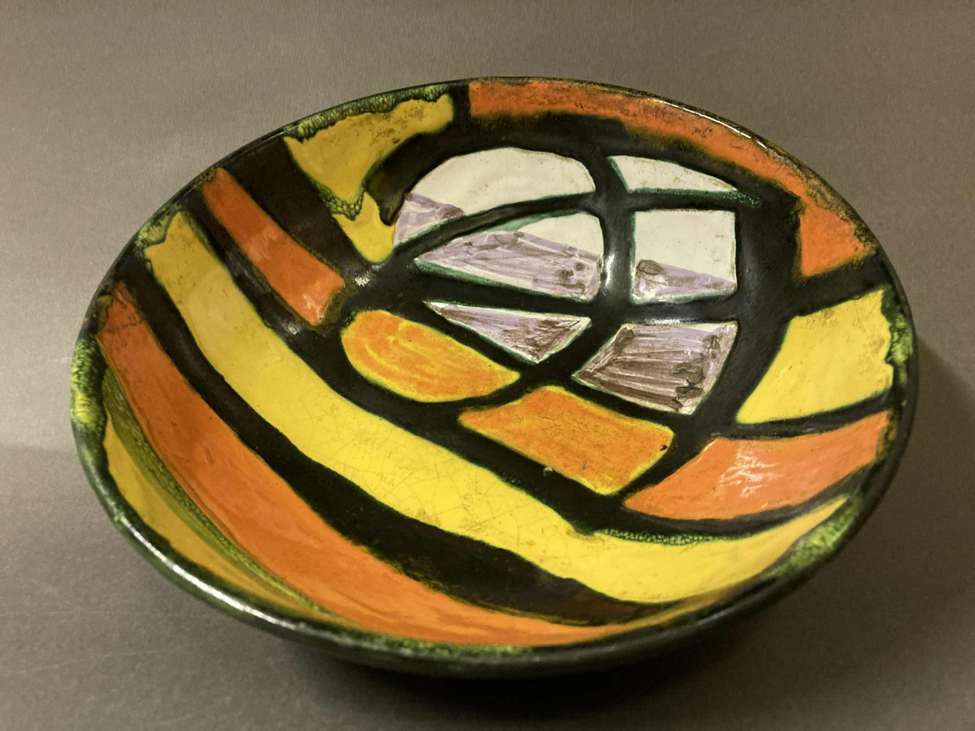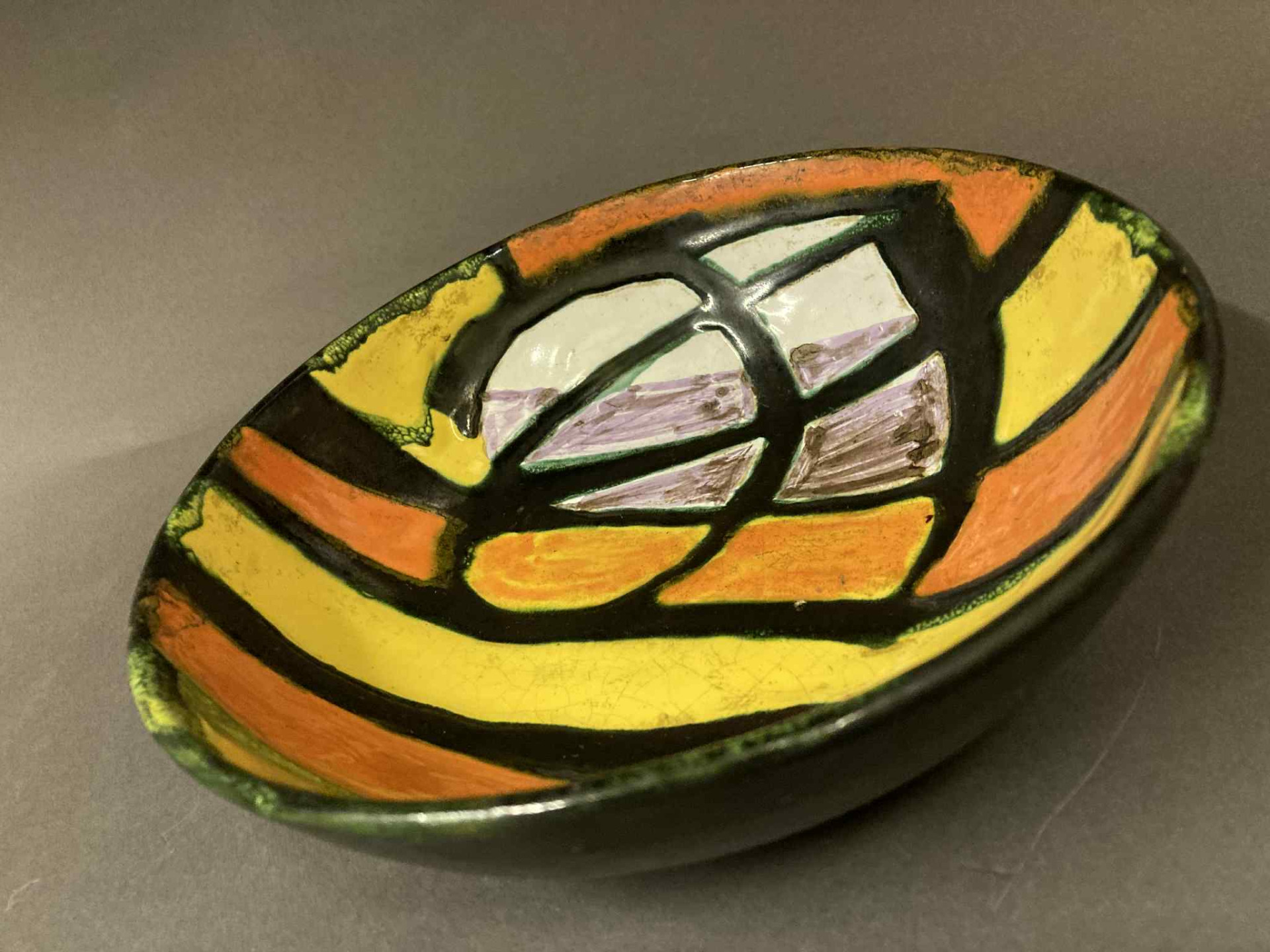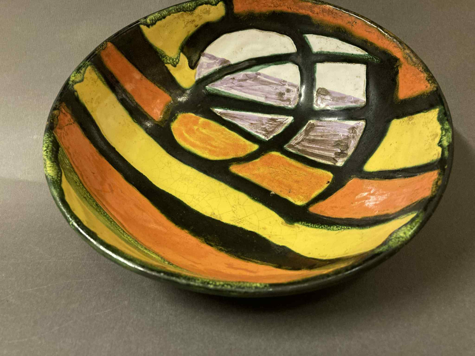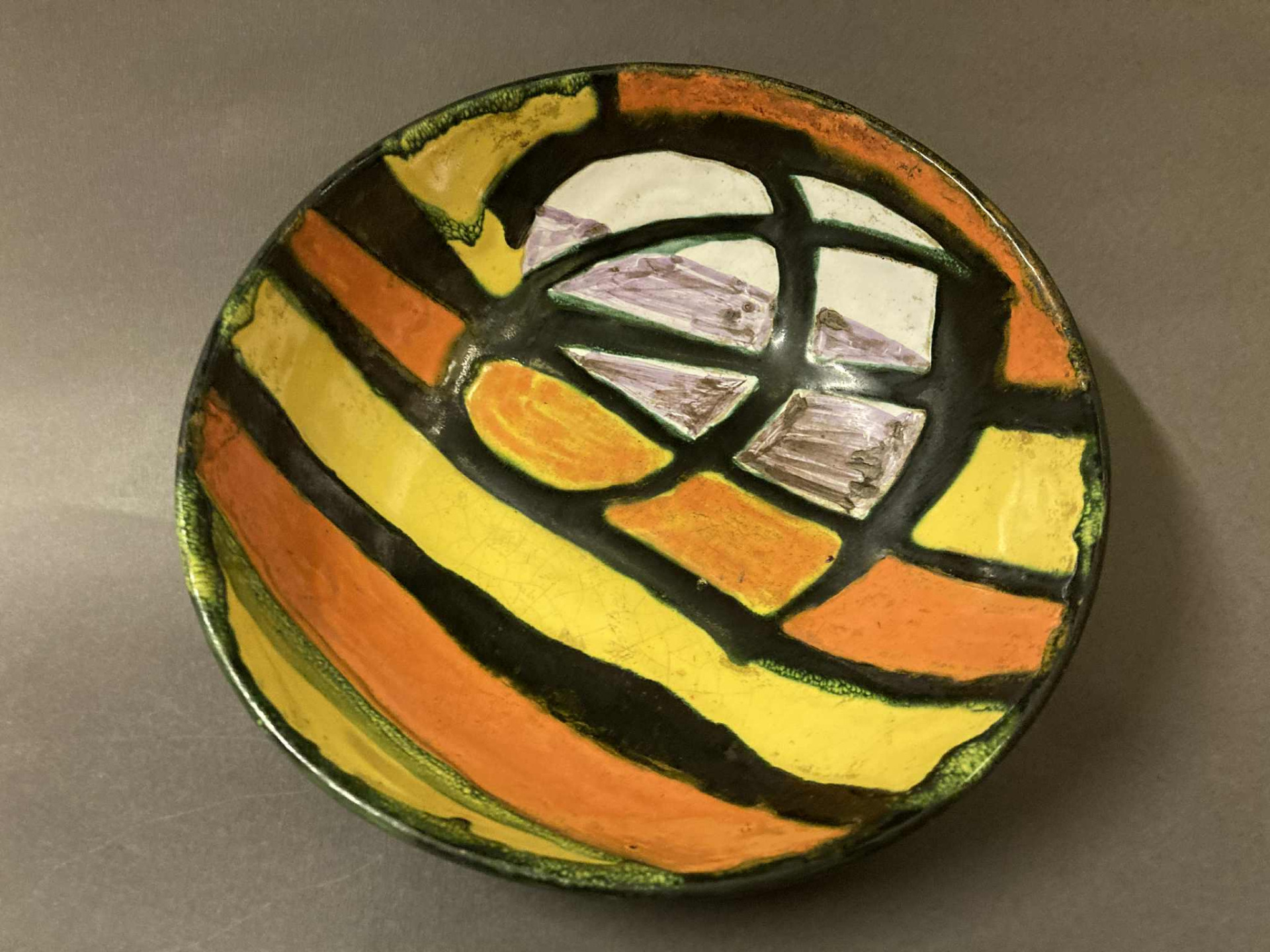 Régi, 1970 körül készülhetett retro kerámia dísztál vagy asztalközép, Györgyey Zsuzsanna keramikus munkája. Hibátlan, jelzett darab, talpán a művésznő névbetűs jelzésével!
