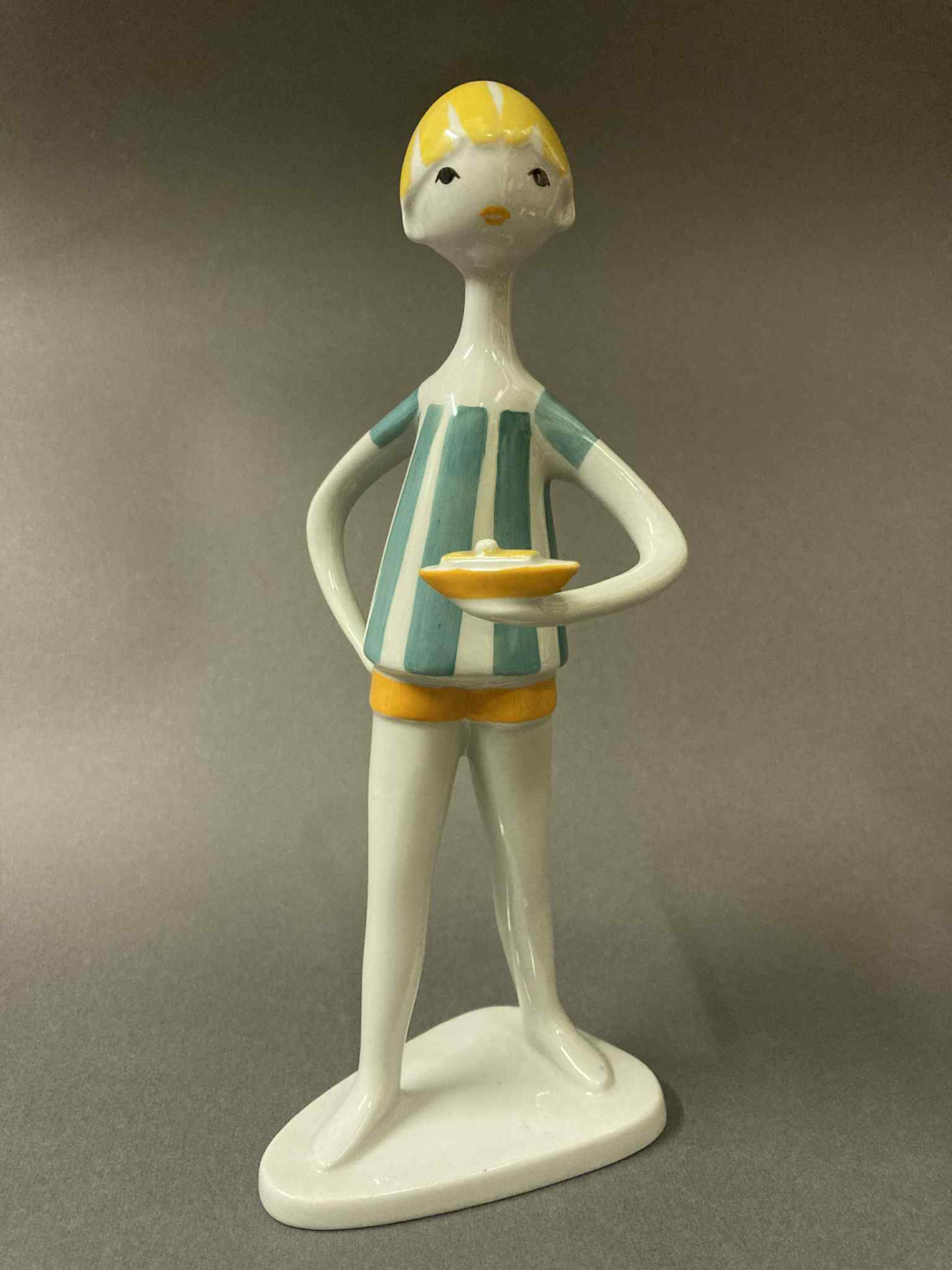 Régi, 1960 körüli porcelán figura ritkaság, a Drasche - Kőbányai Porcelángyár I. oszt. hibátlan jelzett darabja, melyet J. Seregély Márta tervei alapján készítettek! Gyönyörű és ritka darab, pazar állapotban, gyűjteményből!