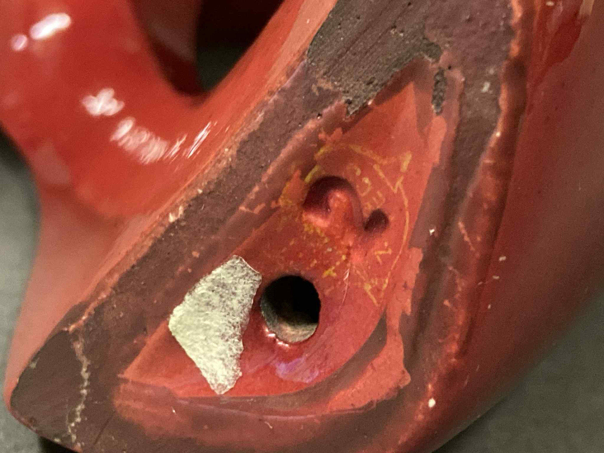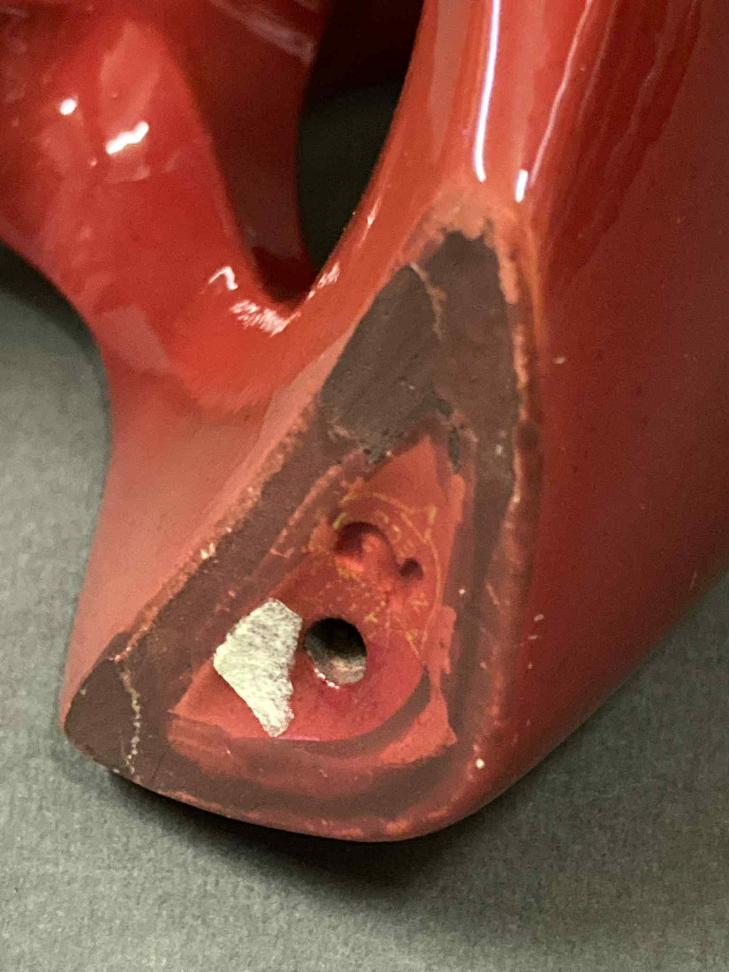 porcelán ökörvér mázas kisplasztika, egy töprengő alak ábrázolása. A